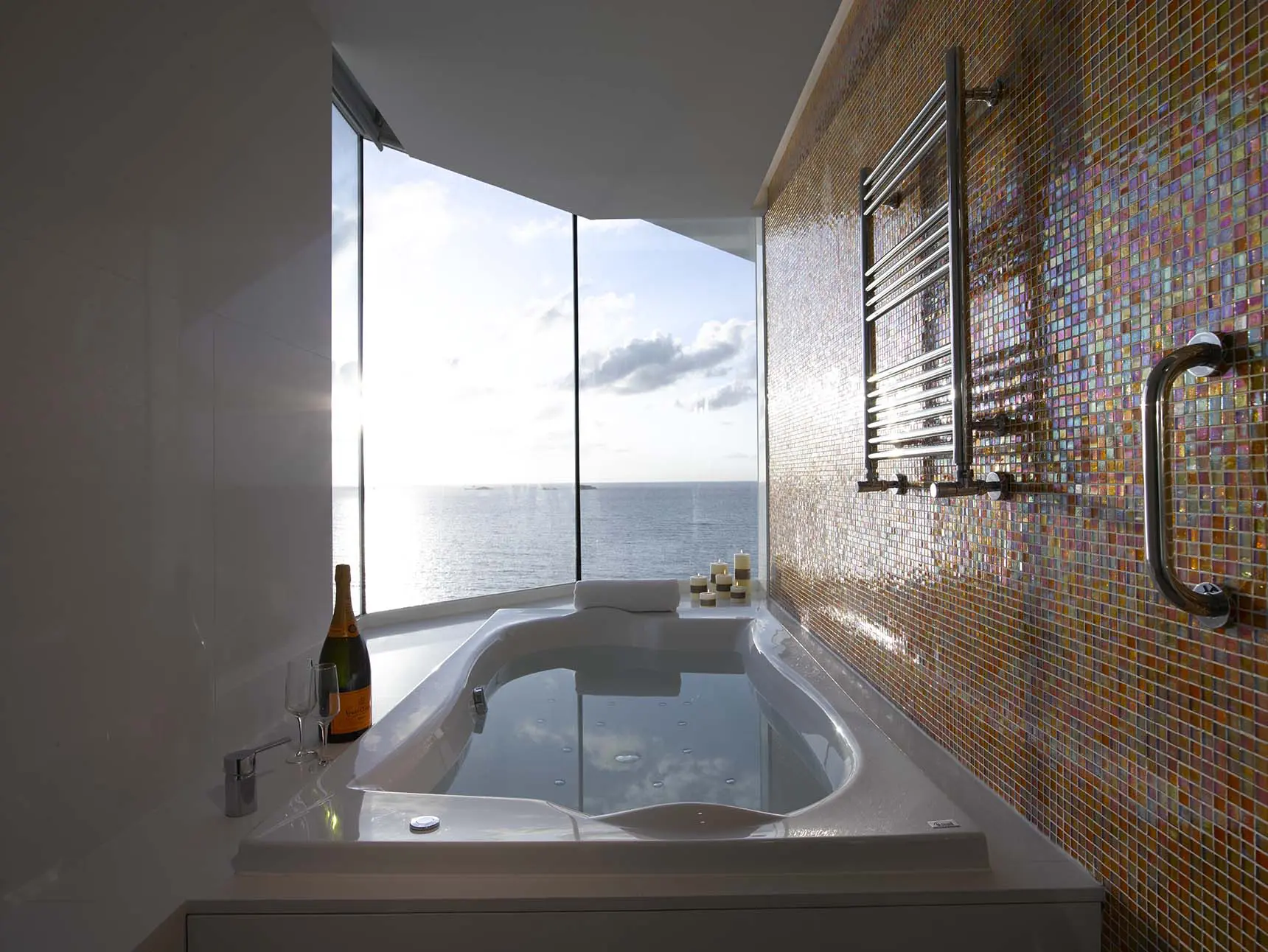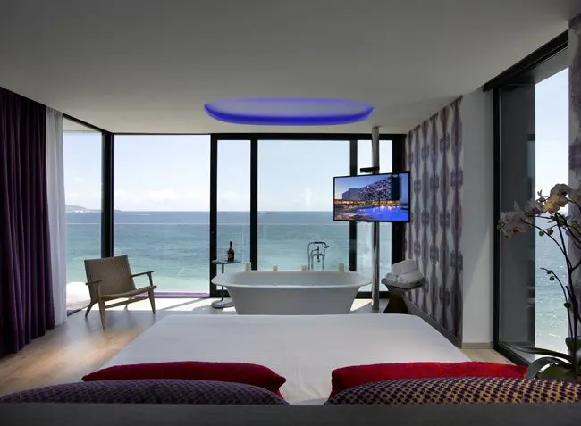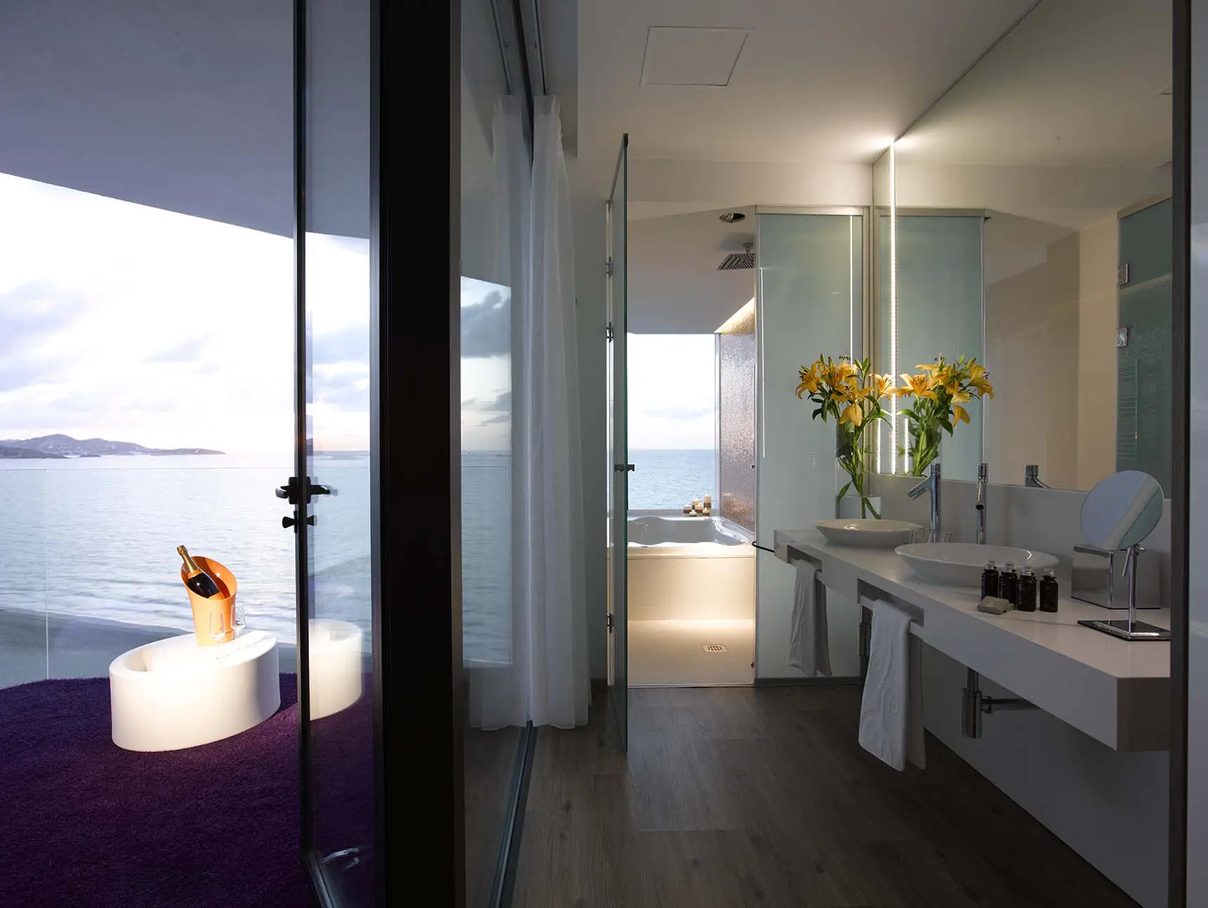 Desde su interior, en cualquier punto, se puede observar el mar. Los jacuzzis se sitúan en la terraza acristalada, como si nos bañáramos en el mismo mar Mediterráneo que estamos viendo.