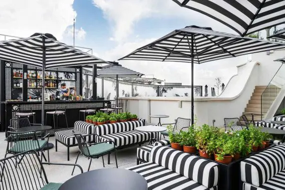 Terraza en Hotel Pestana CR7 Gran Vía Madrid. Fotografía: Estudio b76