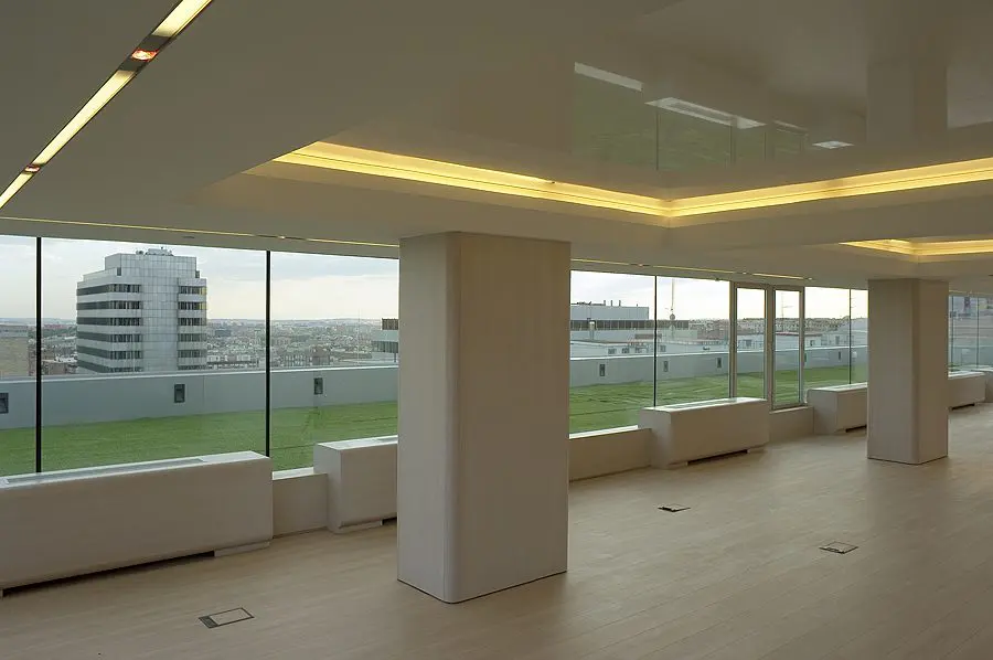 En la actuación por fases que Estudio b76 ha llevado a cabo en el Gran Hotel Colón de Madrid para la compañía hotelera de reciente fundación, Ayre Hoteles, han buscado la incorporación de las impresionantes vistas en el espacio interior mediante grandes cristaleras sin marco.