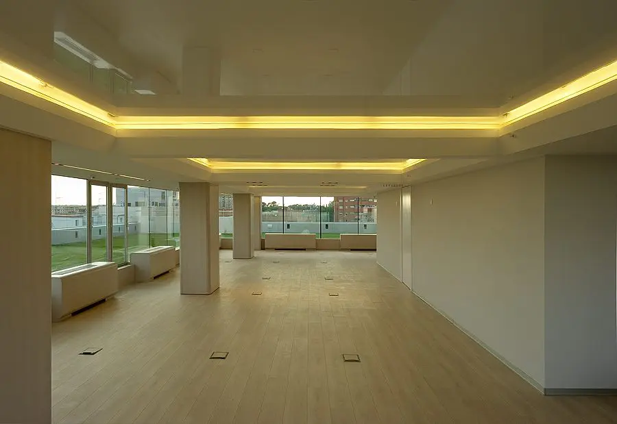 El espacio interior, siguiendo la vocación business del hotel y la marca se destina a salas polivalentes para celebrar actos, reuniones y eventos varios, con un oficio de apoyo conectado por ascensor de servicio a las cocinas centrales de la torre.