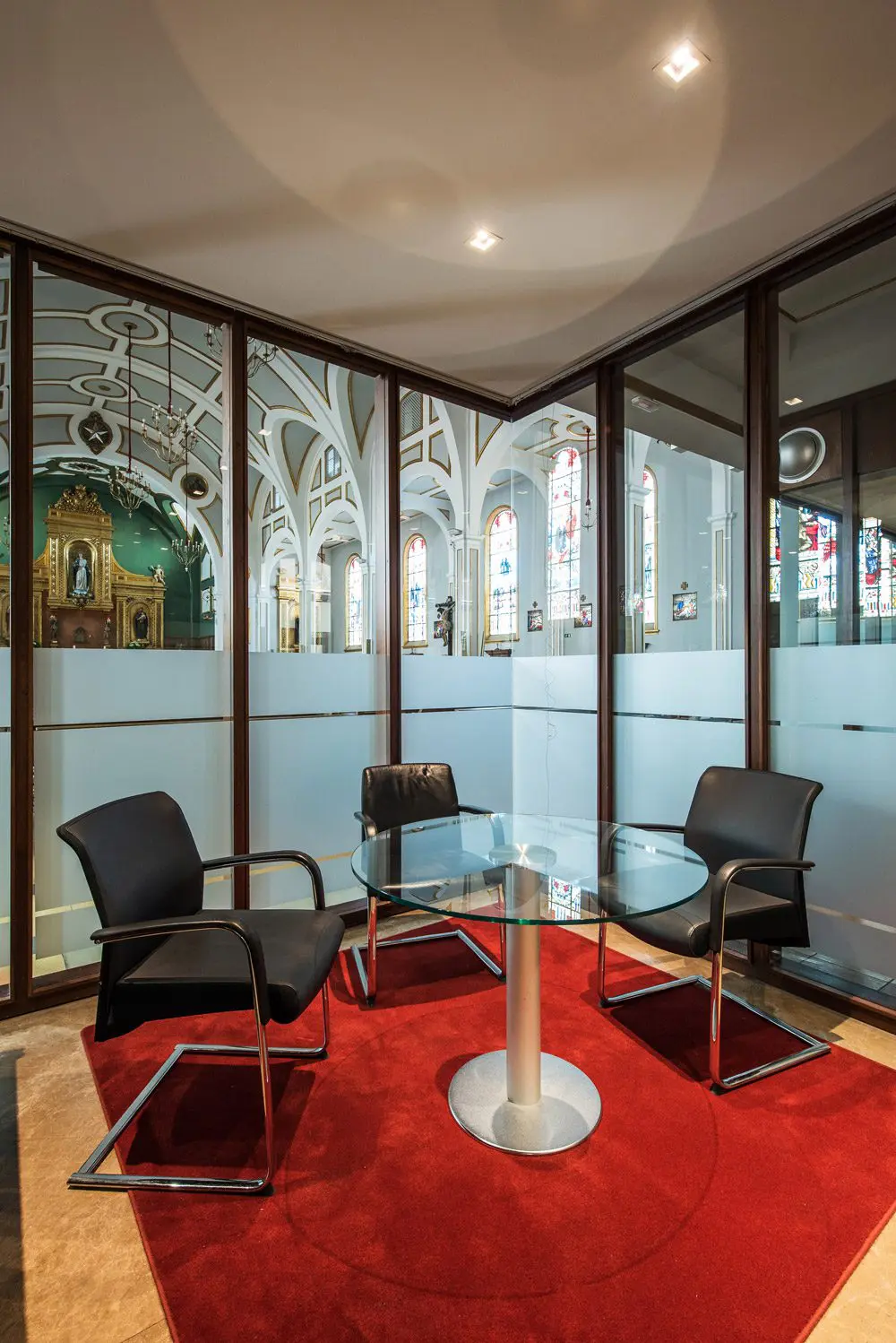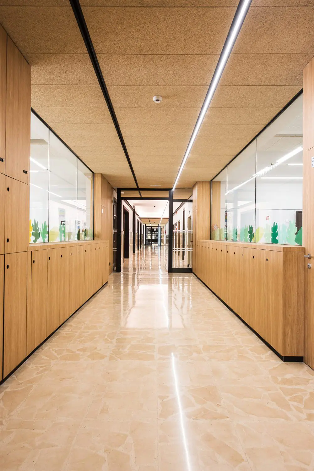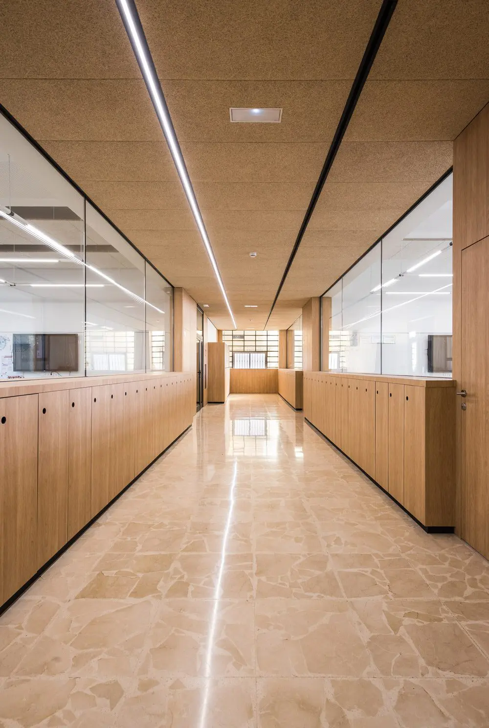 Hemos roto la rigidez de las aulas creando espacios comunicativos, que flexibilizan las relaciones alumno/profesor y entre los propios alumnos. Estos nuevos espacios proyectados que combinan los especializados en materias con los más flexibles y diáfanos, añaden a la calidad tecnológica del aula (digitalización, depuración del aire, ventilación, soleamiento etc.) las diferentes posibilidades de organización a disposición de quien imparte la materia según las necesidades.