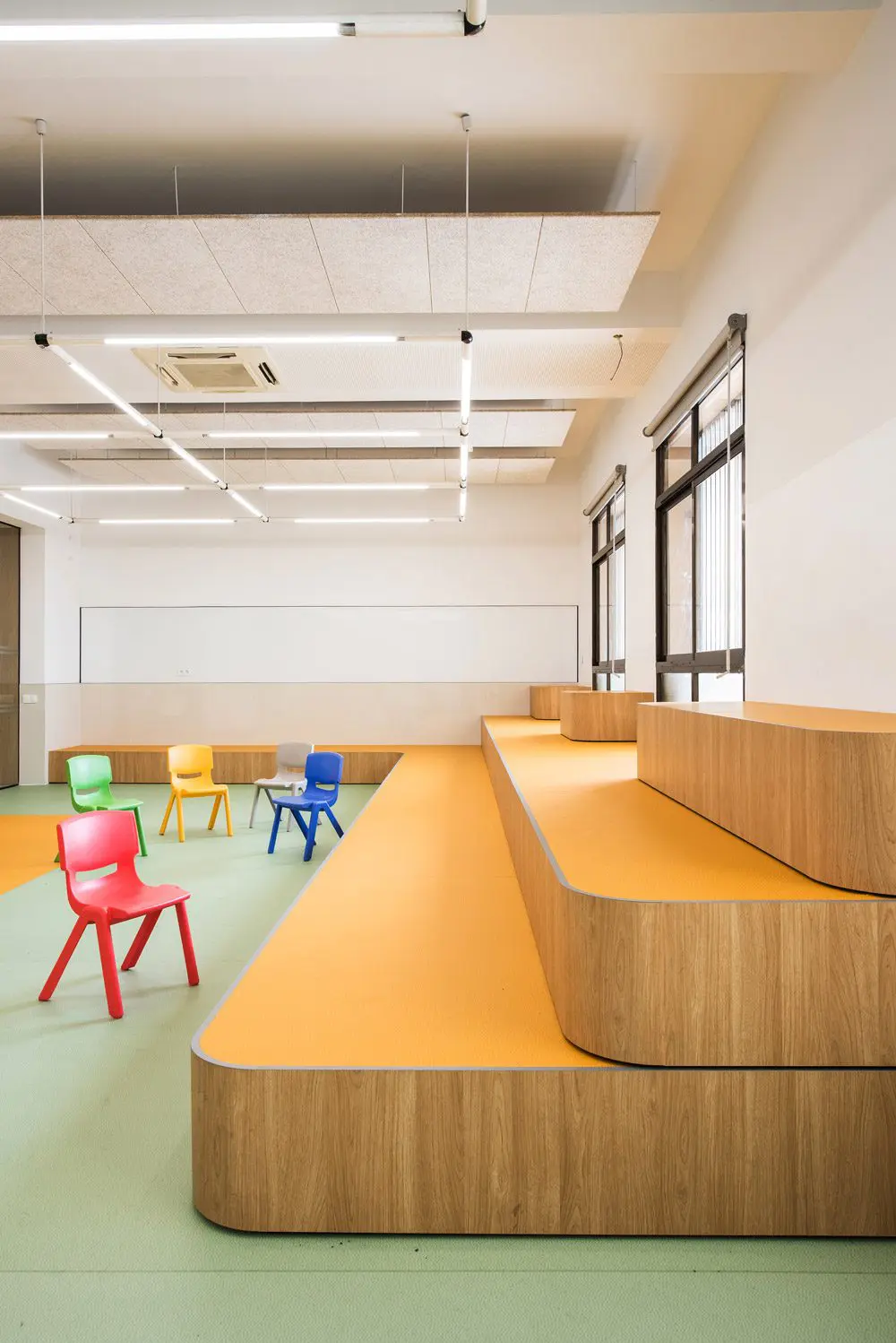 Este nuevo enfoque implicó a los equipos de arquitectura de Estudio b76 y Virai y al claustro de profesores y dirección del Centro en una auténtica tormenta de ideas inspiradoras que ha logrado y está logrando una nueva forma de entender la relación del alumnado y profesorado con los espacios en los que se imparte la enseñanza.