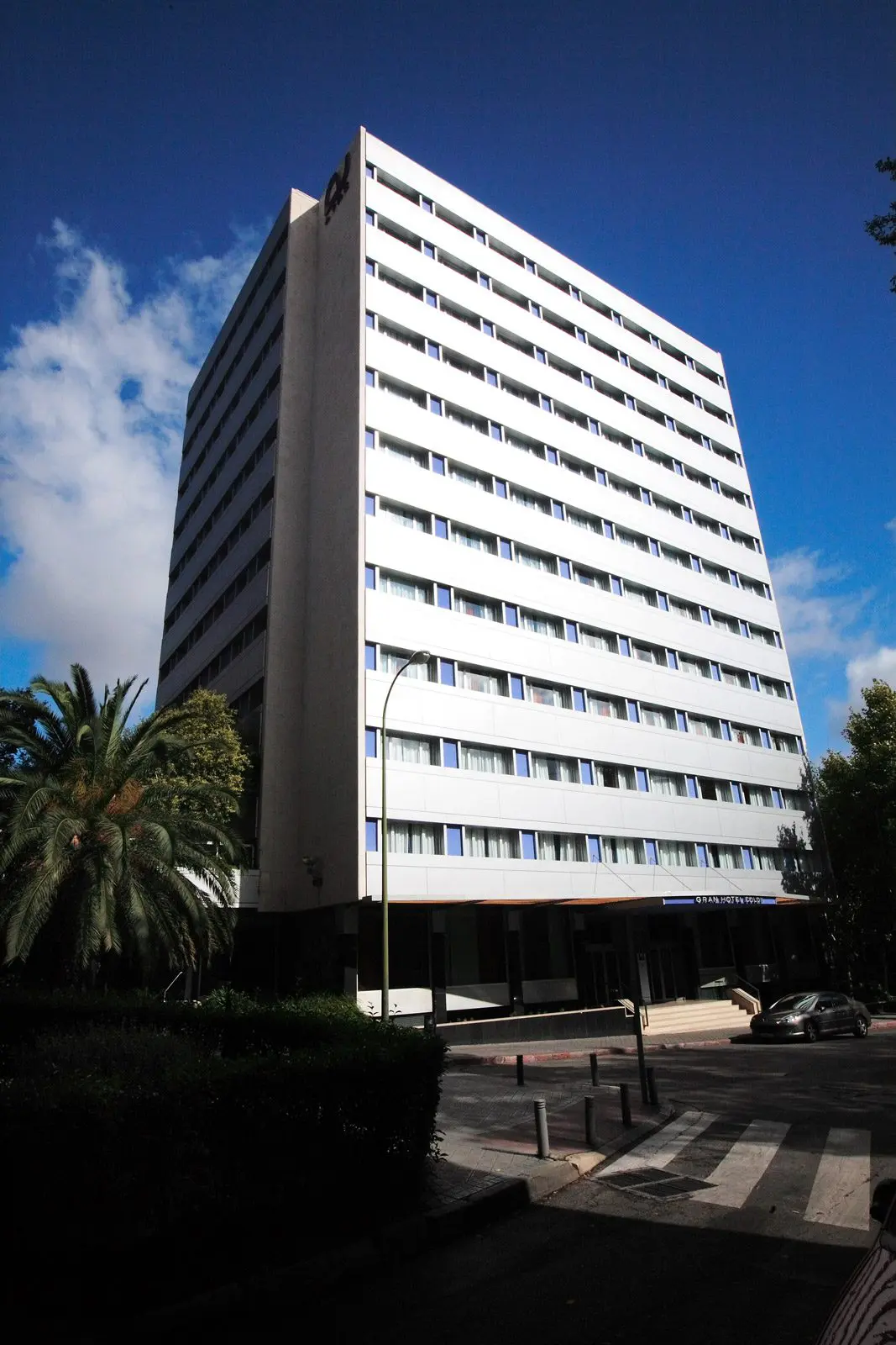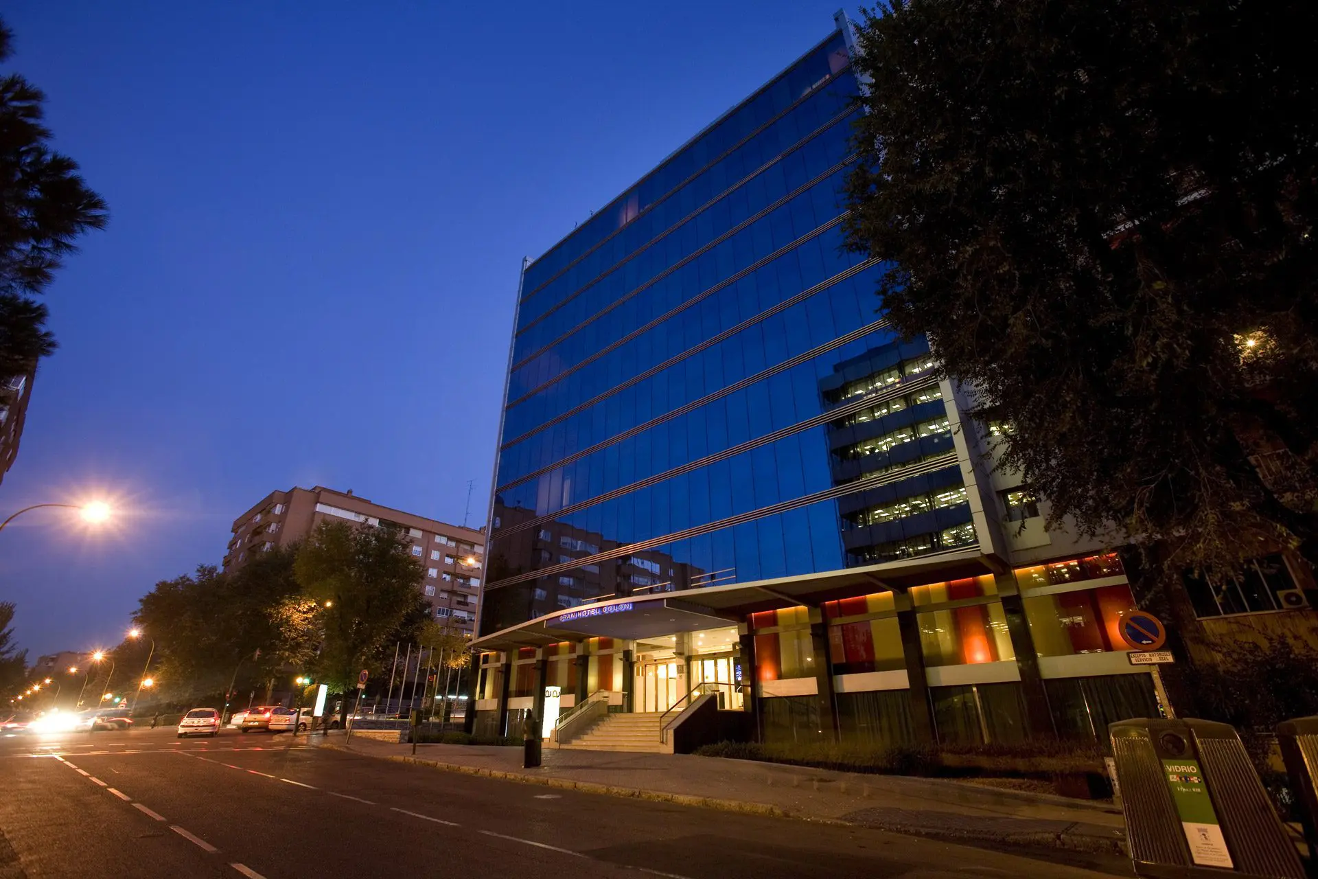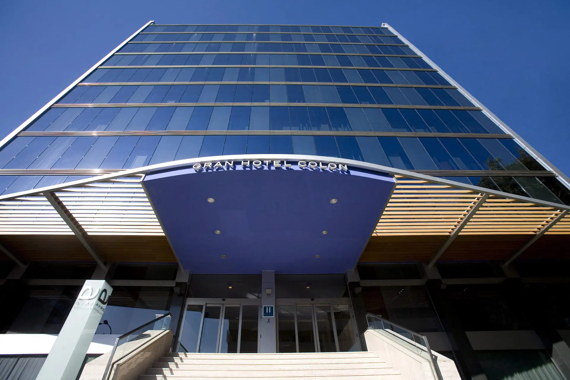 La propuesta consiste en fabricar “un traje nuevo” de aluminio y vidrio para actualizar la imagen de un edificio cuyas fachadas construidas en 1965 están en un mal estado de conservación. Las dos torres, Europa y América del Gran Hotel Colón de Madrid, de 12 y 14 plantas respectivamente son revestidas íntegramente, destacando el muro cortina de la fachada principal de la torre Europa. Los accesos de ambas torres se enmarcan con sendas marquesinas de 25 m2 de longitud y 5 m de vuelo, en acero y madera.