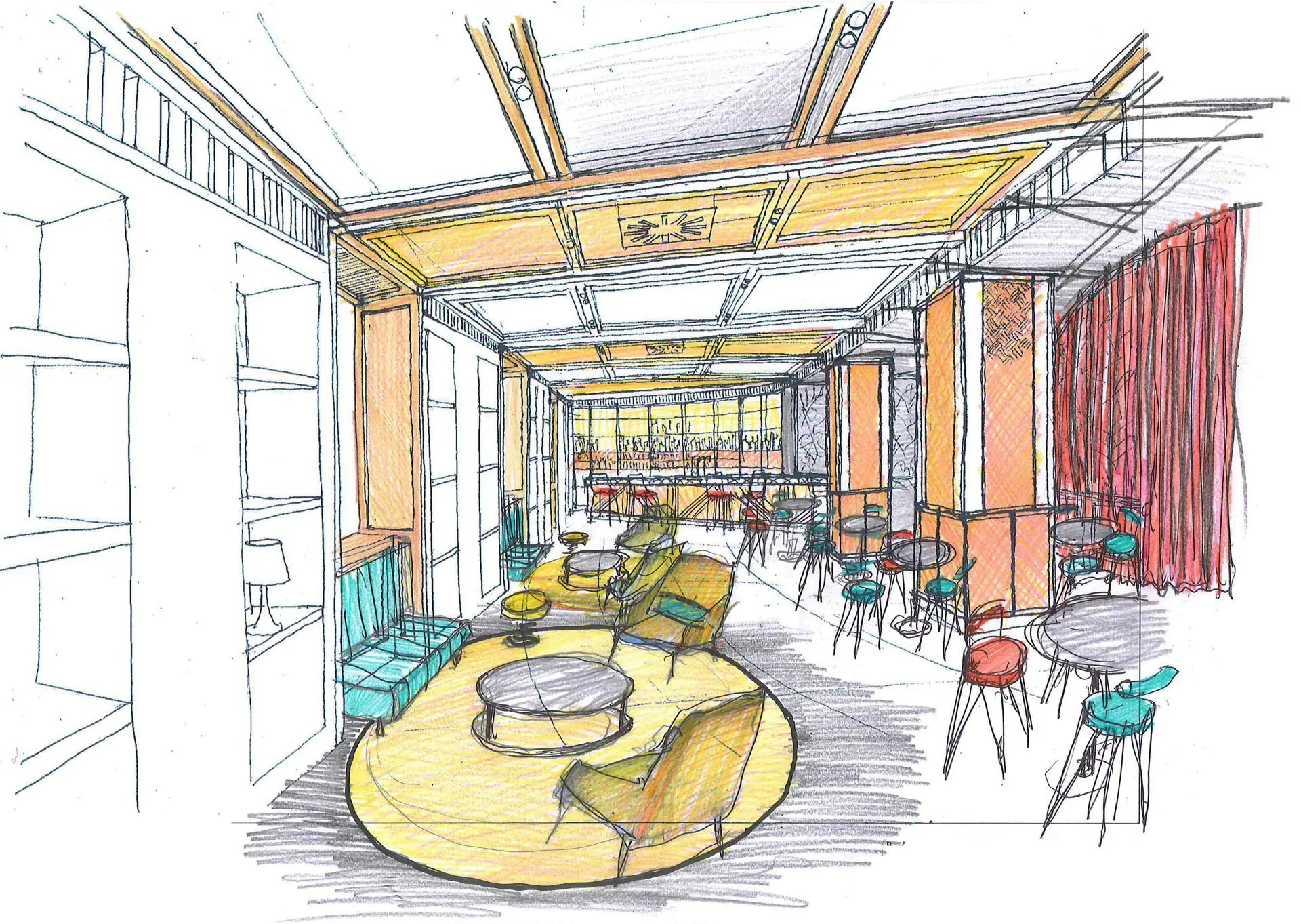 Vincci hoteles ha confiado en el diseño y la capacidad conceptual de Estudio b76 para la transformación de su salón del Hotel Vía 66, en un Gastrobar acogedor de día y estimulante de noche: El Burlesque lo llaman, asomado a los teatros de Musical de la Gran Vía Madrileña.