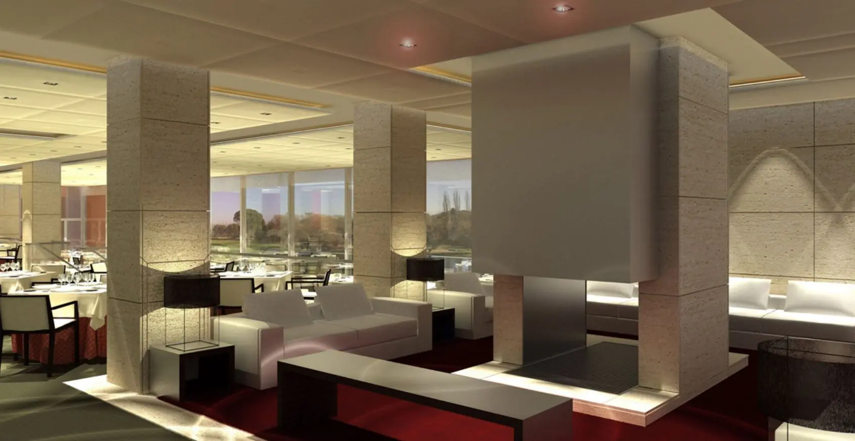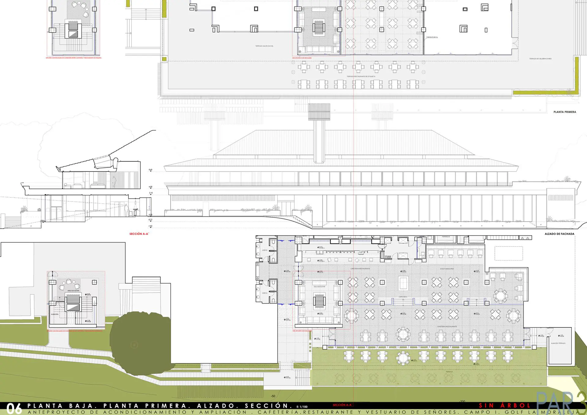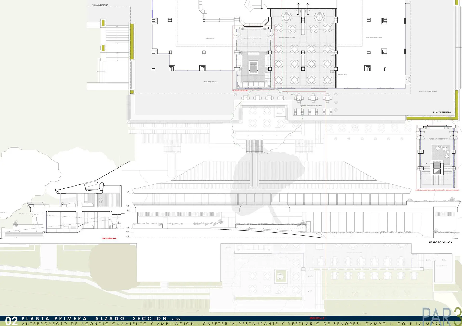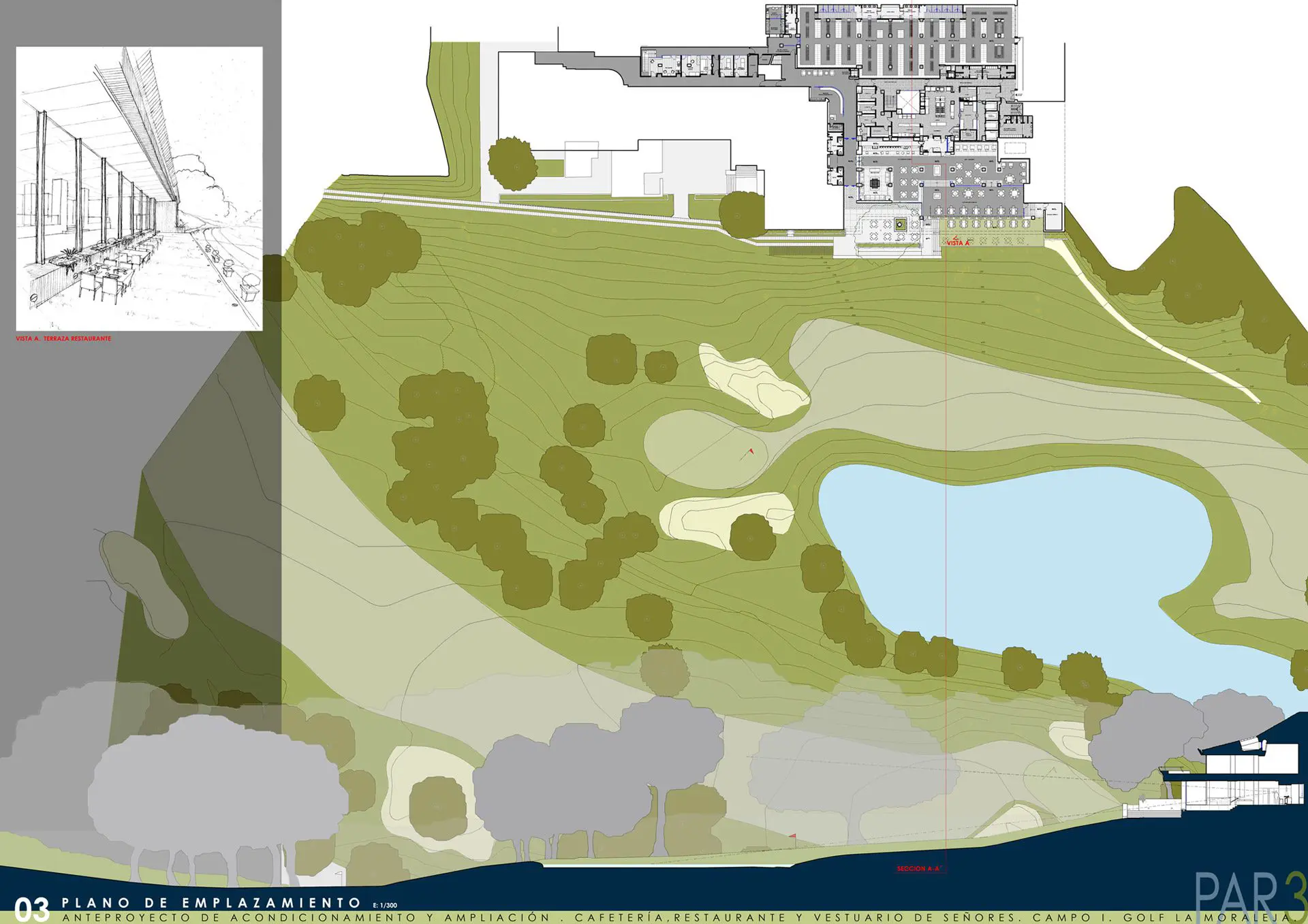 Sobre una magnífica arquitectura preexistente de Miguel Oriol la propuesta que presentamos, ganadora de un concurso internacional, fue la apertura de salones y cafetería restaurante al precioso campo diseñado hace más de tres décadas por Jack Nicklaus. Además de la ampliación necesaria, se solucionaban vestuarios, salones, restaurante, espacios de circulación, áreas de servicio y cocinas.