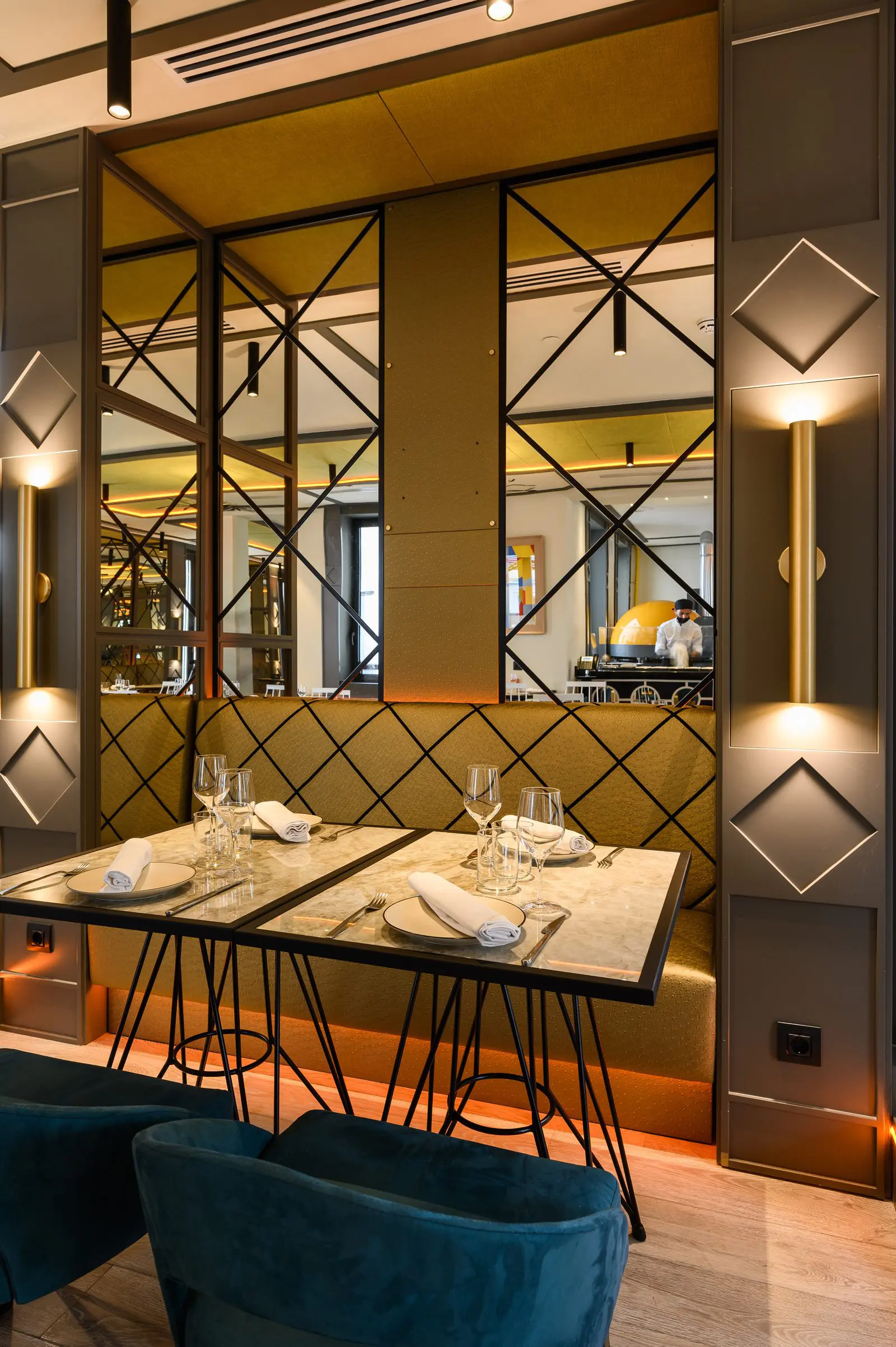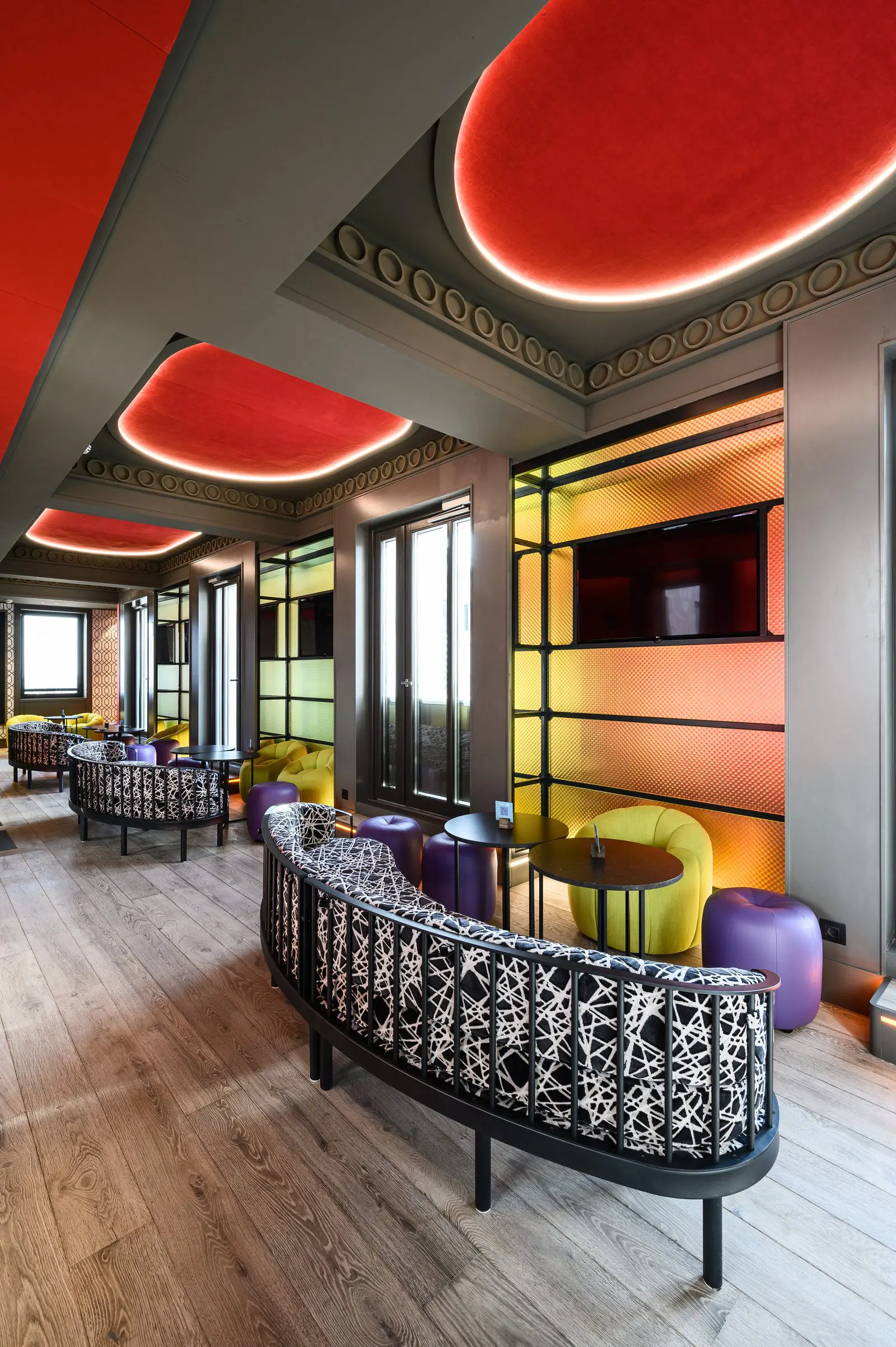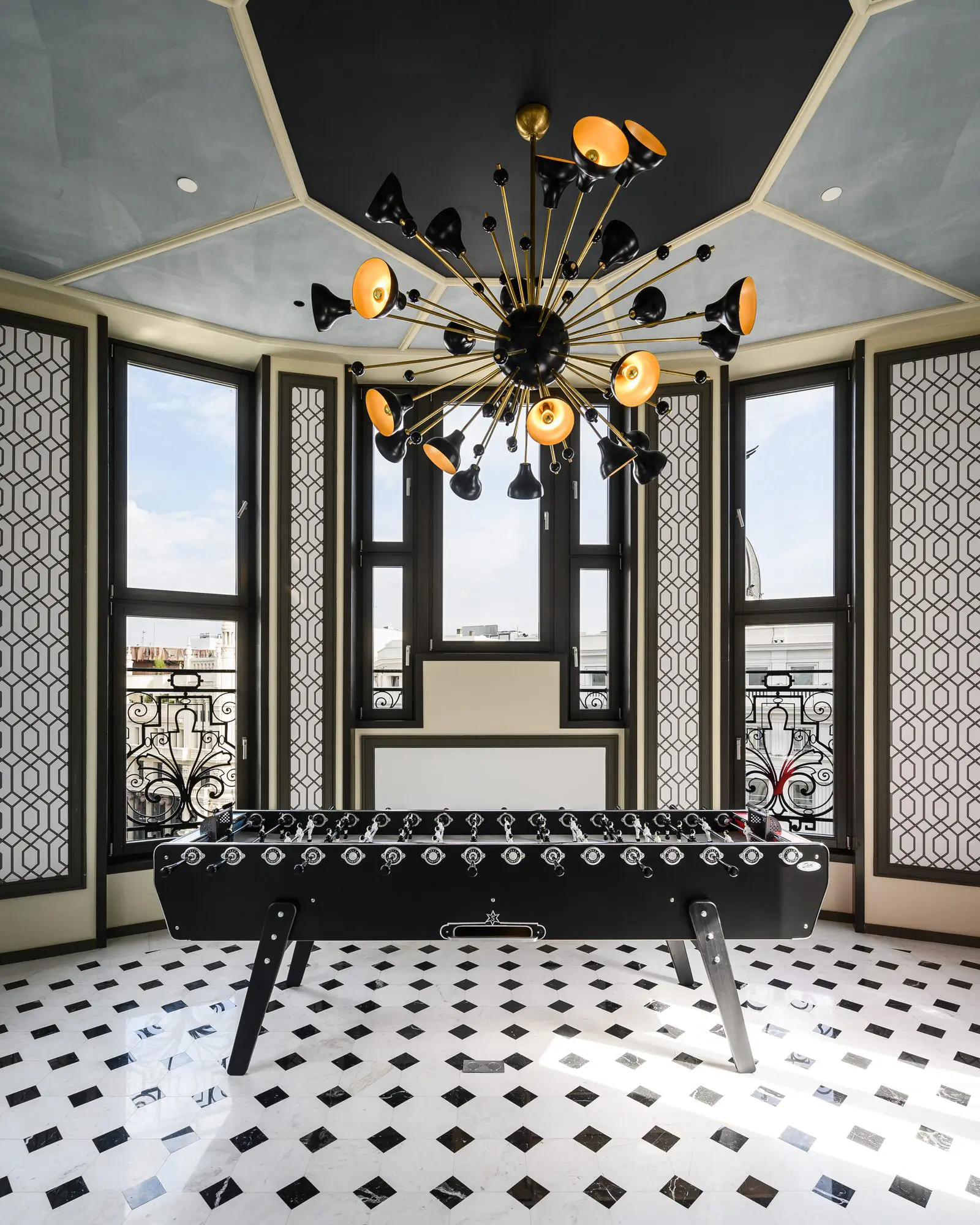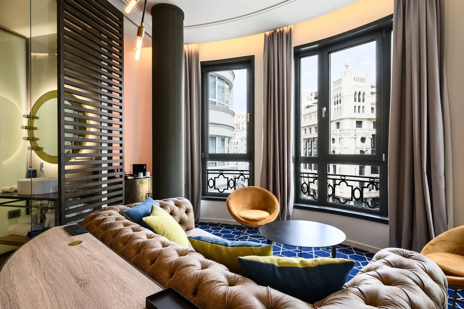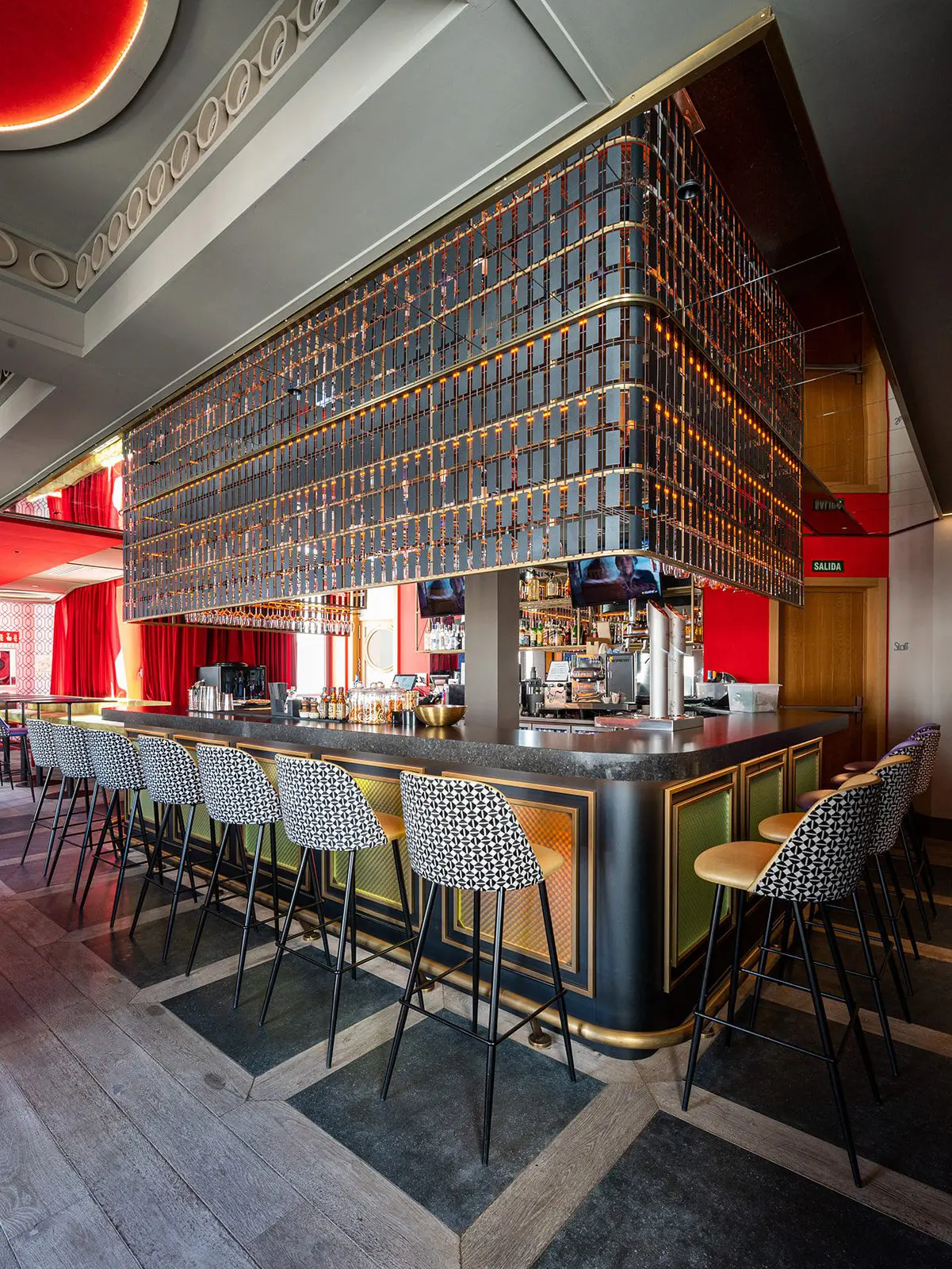 El diseño de Estudio b76 se inspira en las dos épocas doradas de la Gran Vía, los años 20 y 50 del siglo pasado, creando una elegancia canalla propia de un Madrid bohemio y cosmopolita.