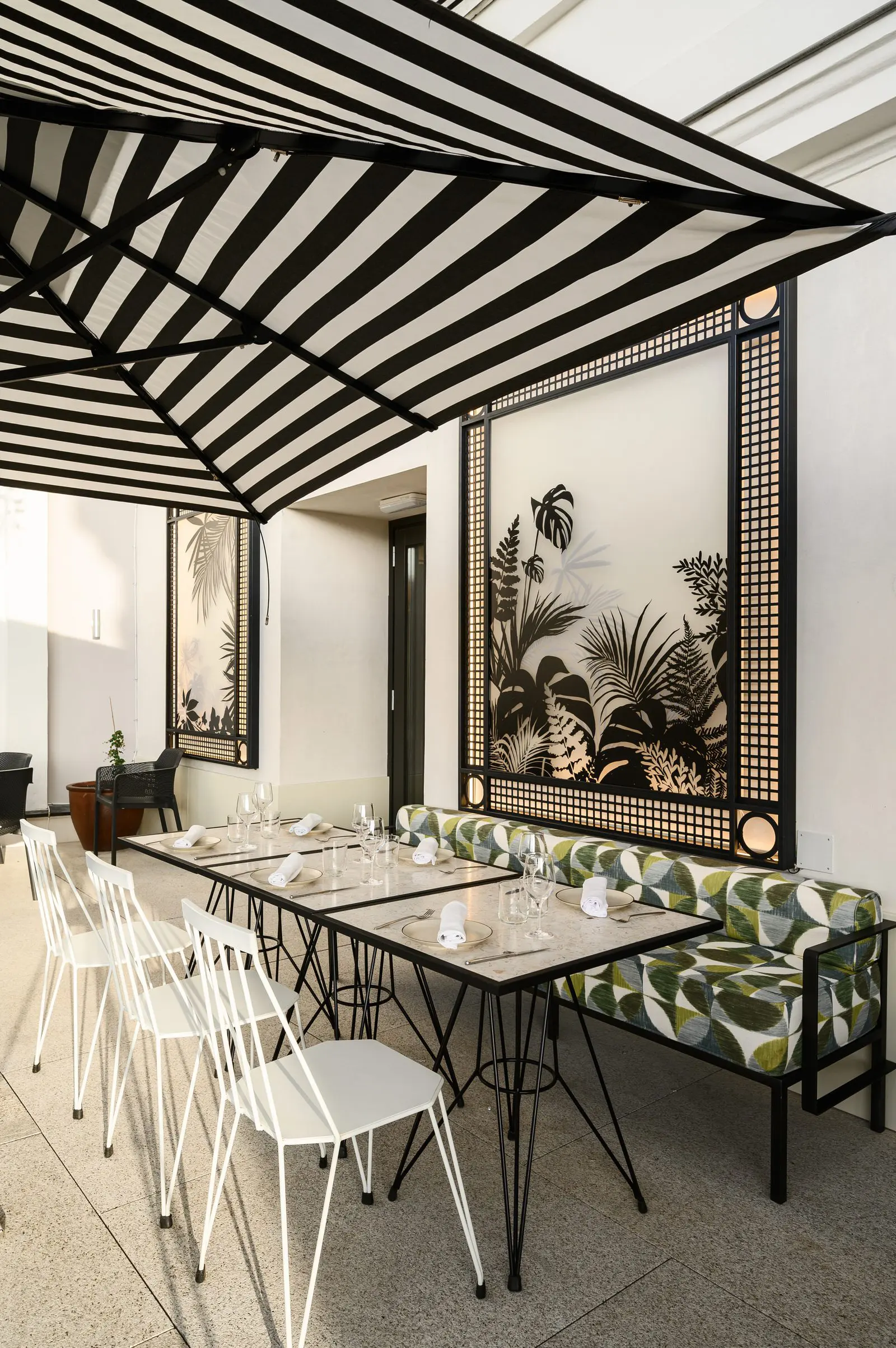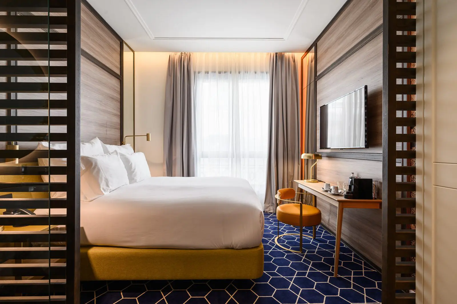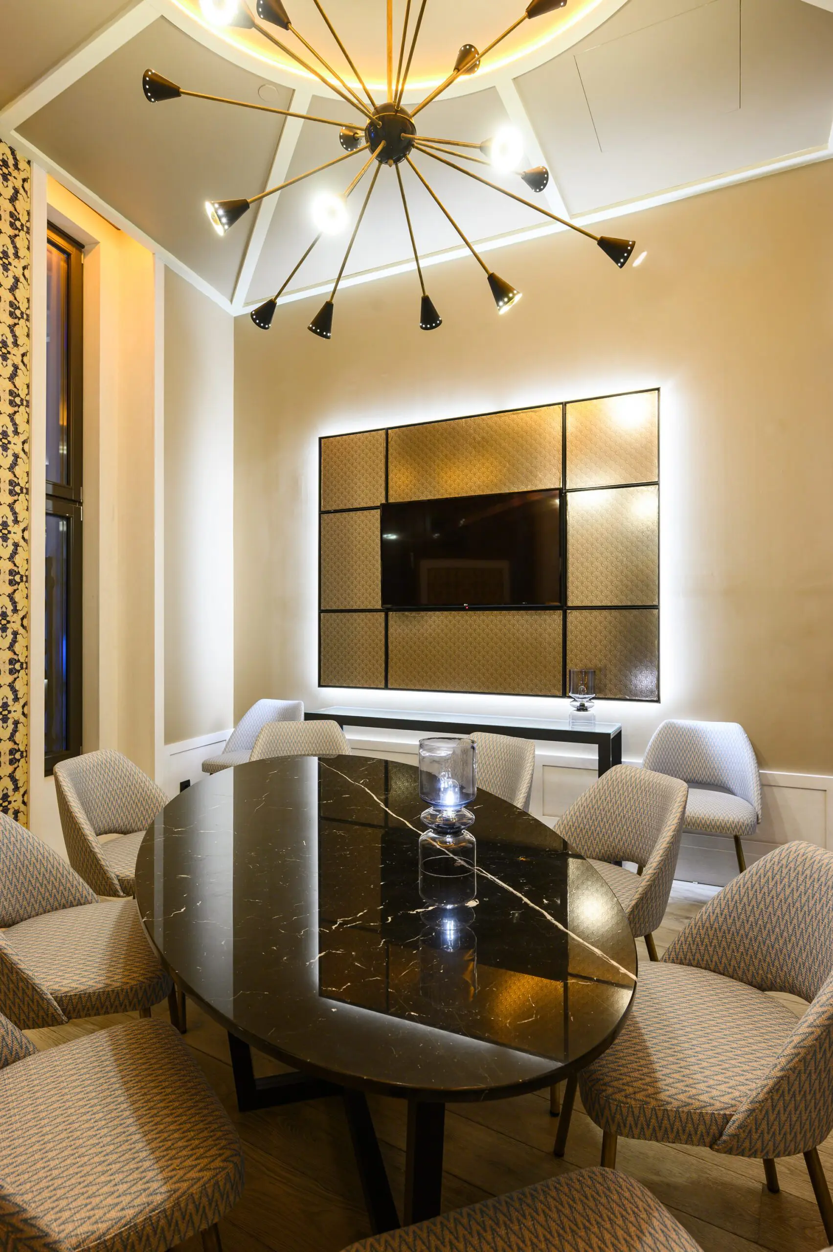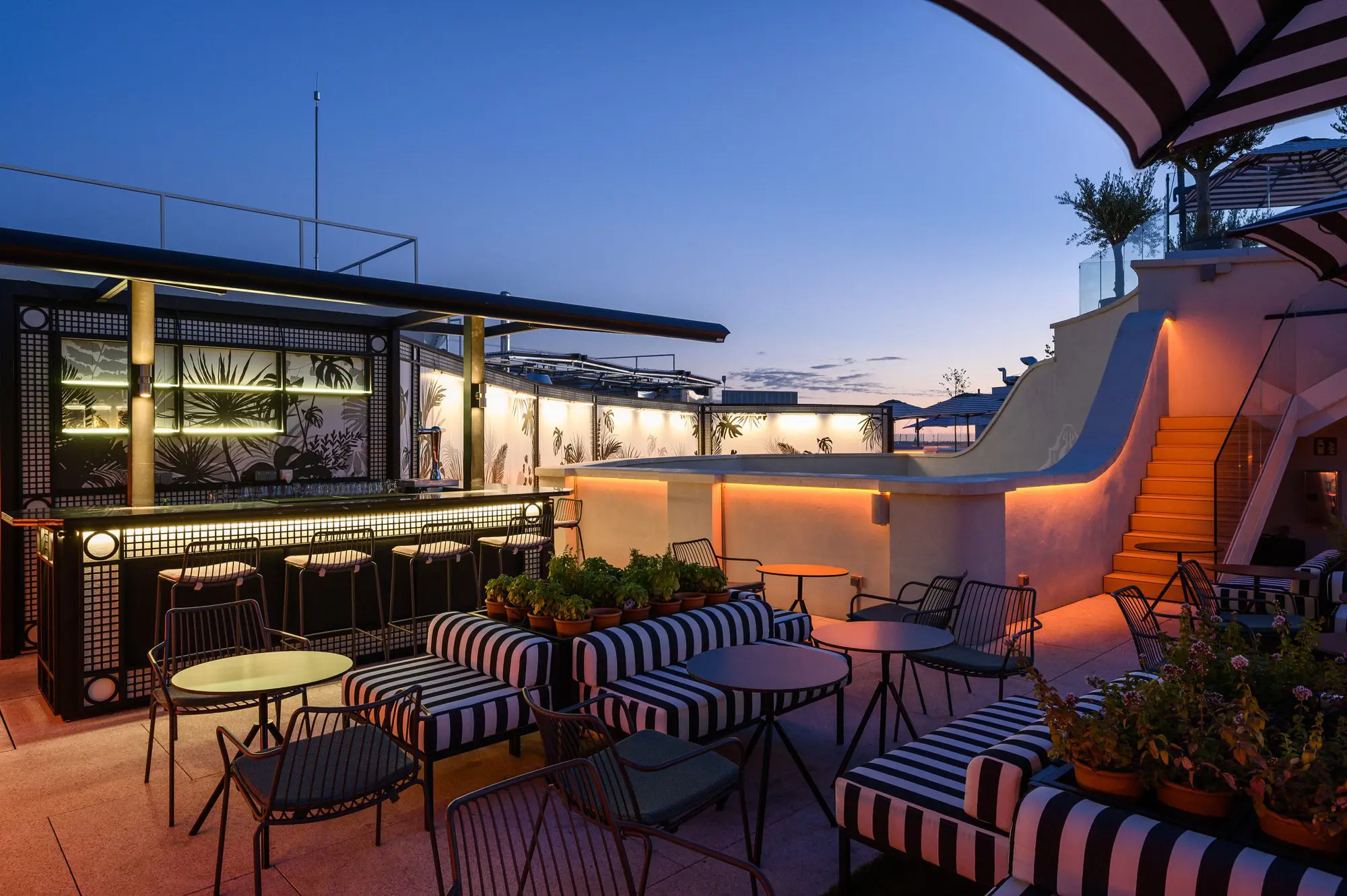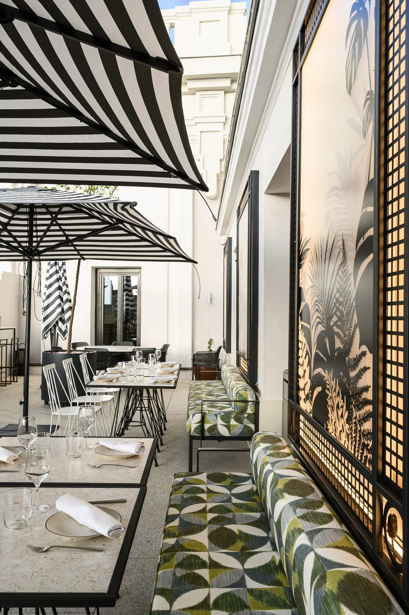 El diseño de Estudio b76 se inspira en las dos épocas doradas de la Gran Vía, los años 20 y 50 del siglo pasado, creando una elegancia canalla propia de un Madrid bohemio y cosmopolita.