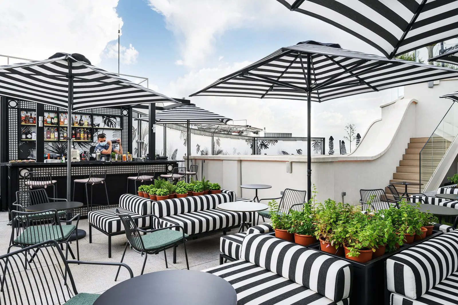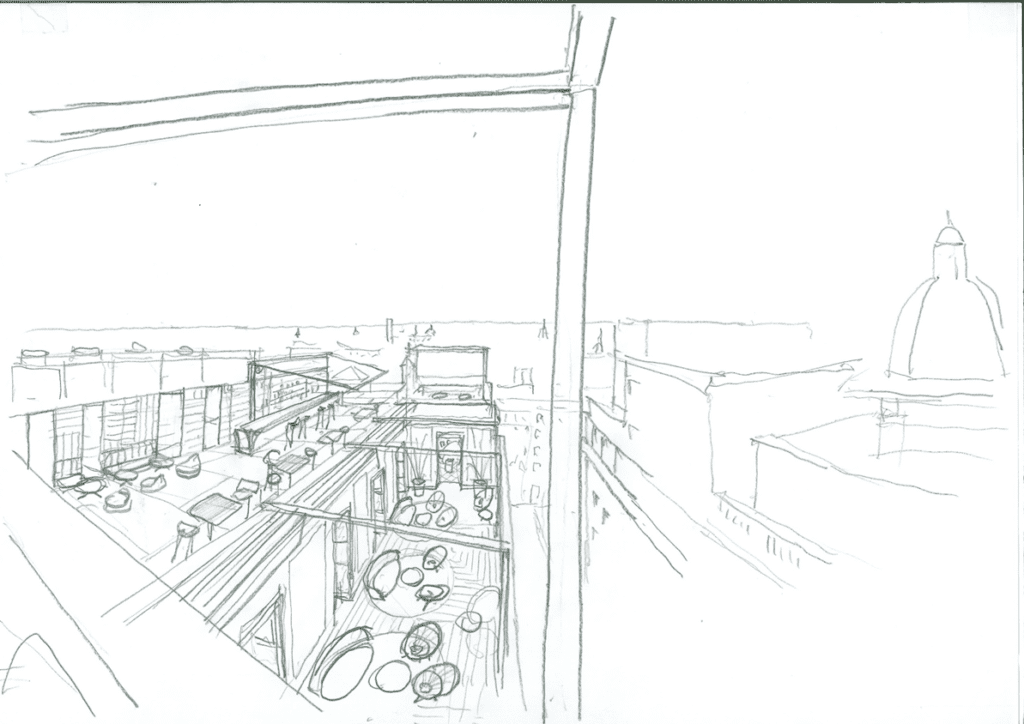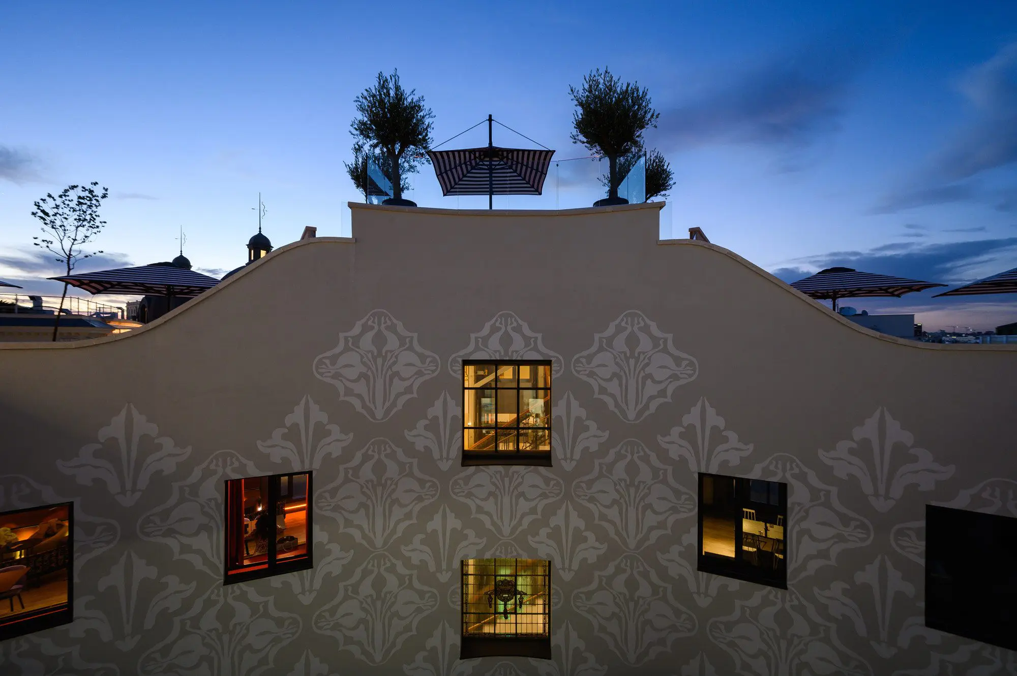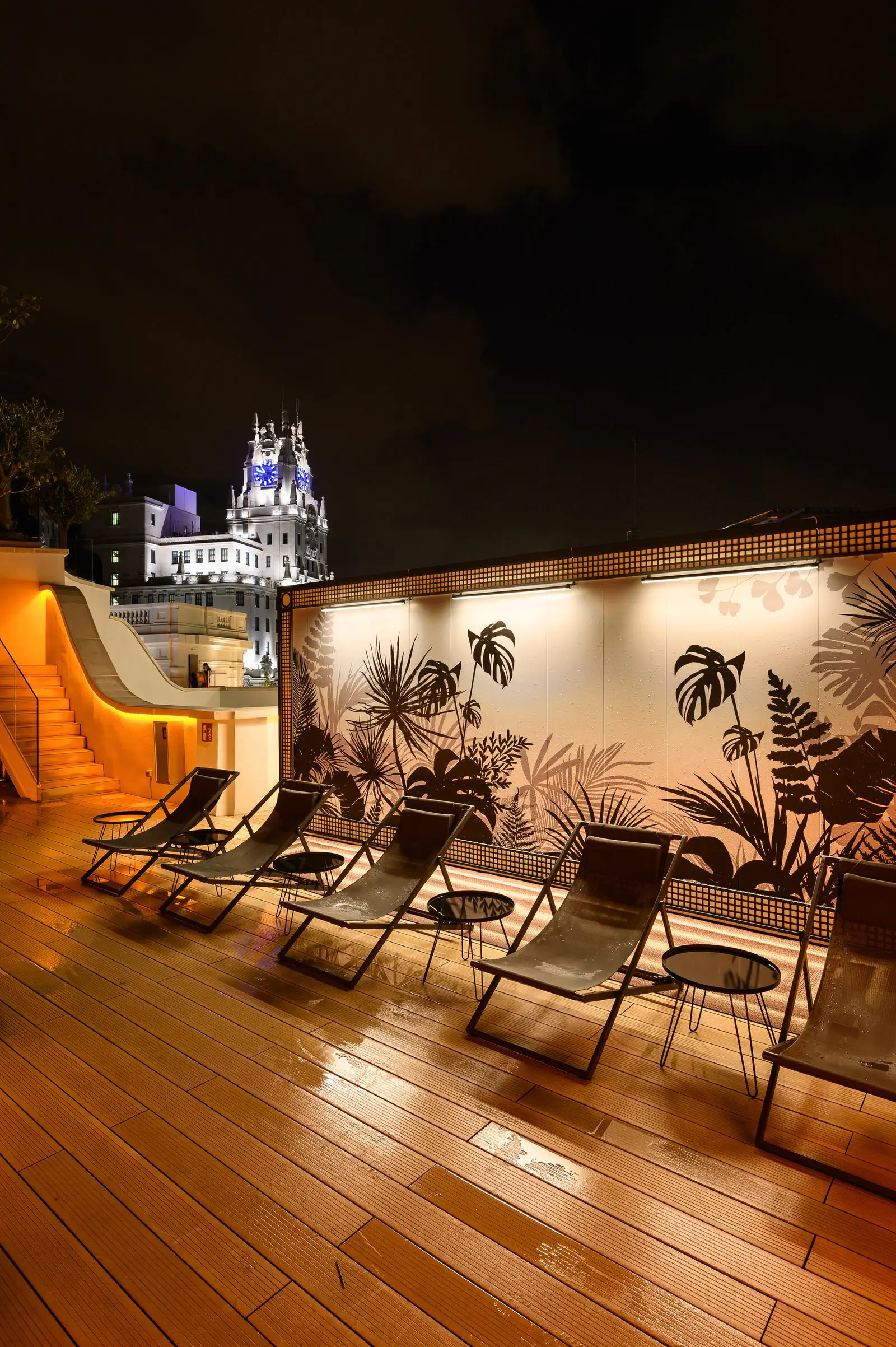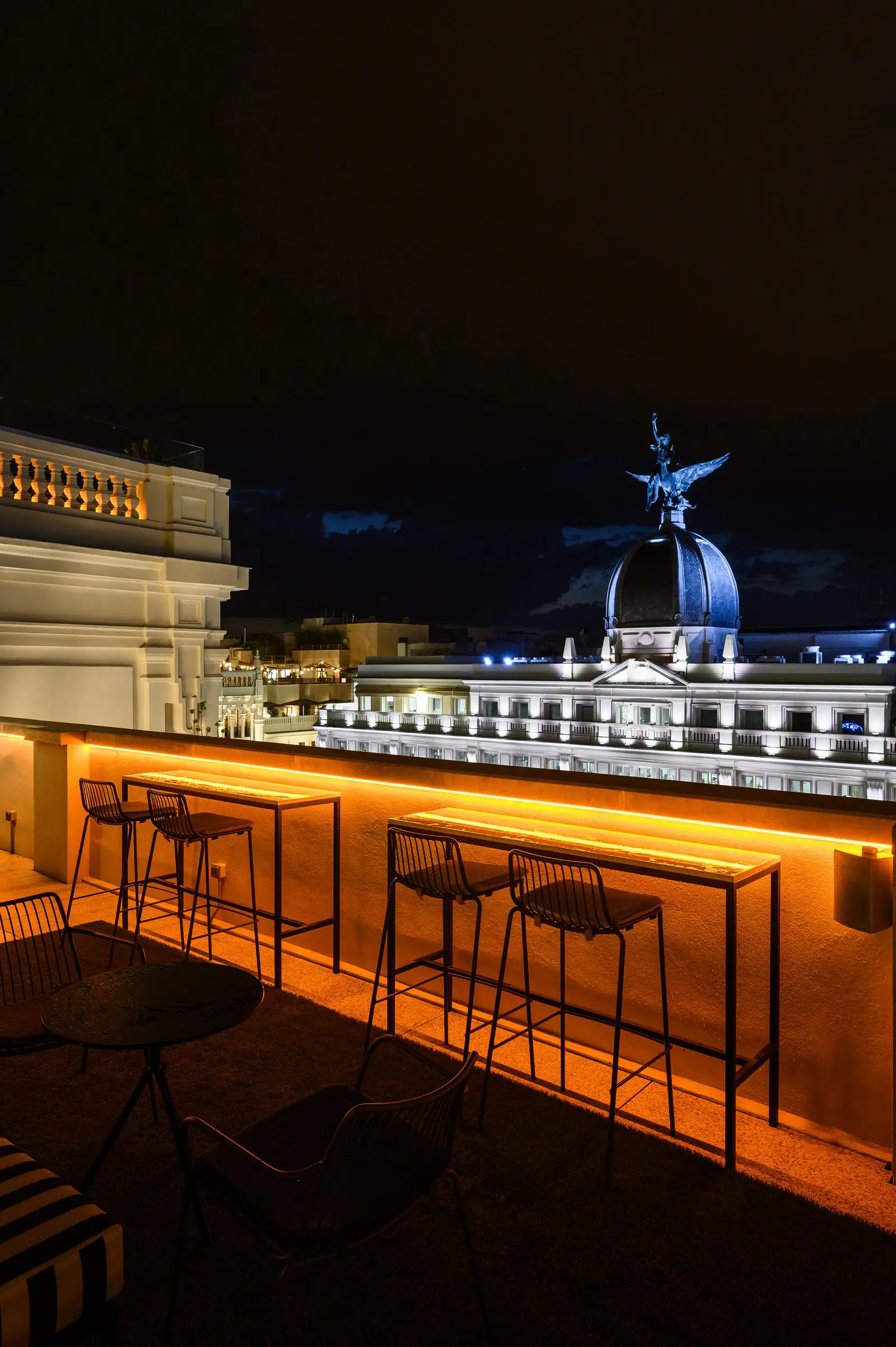En la planta primera su recepción se vuelca a la Gran Vía, mientras que restaurantes, bares, terrazas y piscina se sitúan en la planta 9, 10 y 11 con unas impresionantes vistas de la ciudad.