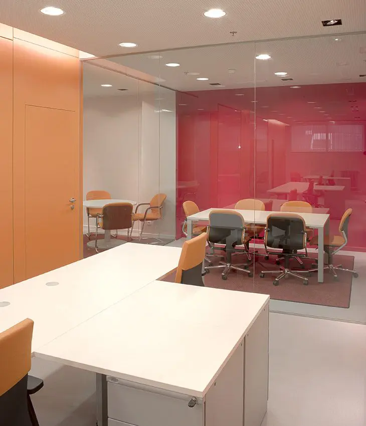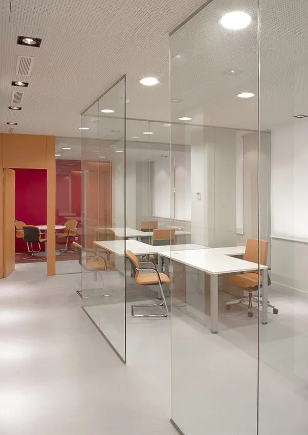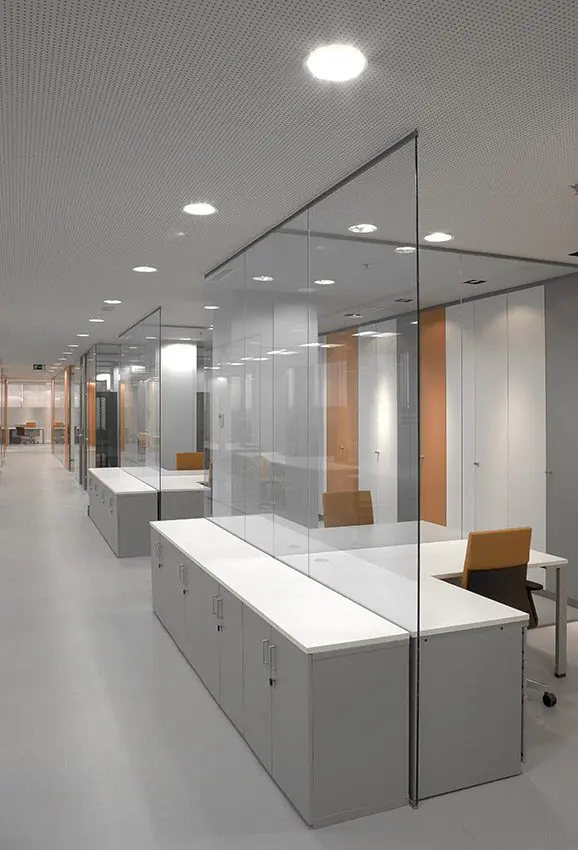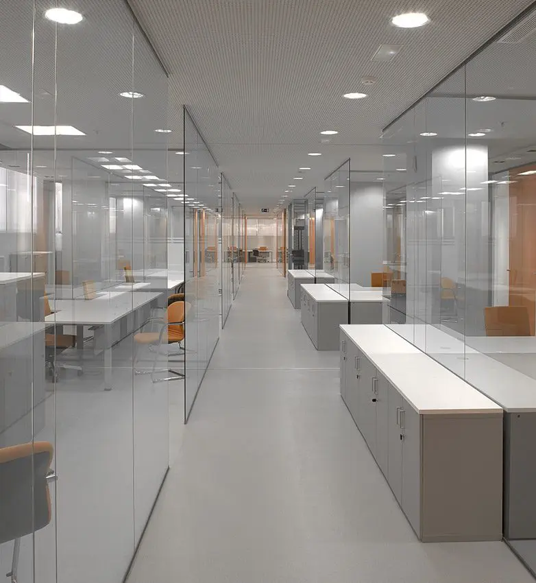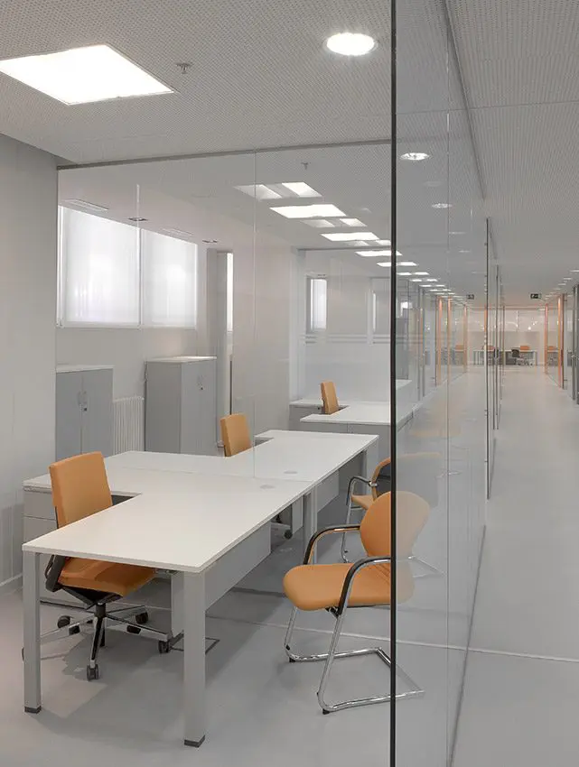 El objetivo era lograr que la luz natural penetrara en todos los espacios. A pesar del exigente y denso programa del IGME el objetivo se logró mediante tabiquería acristalada transparente.