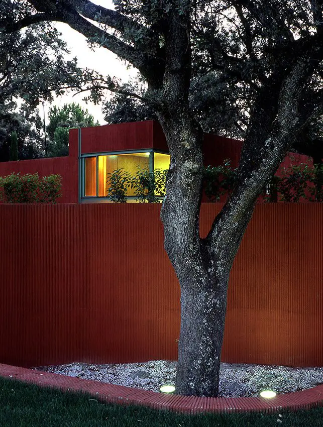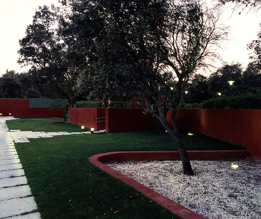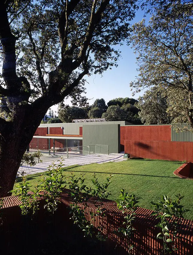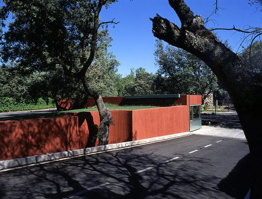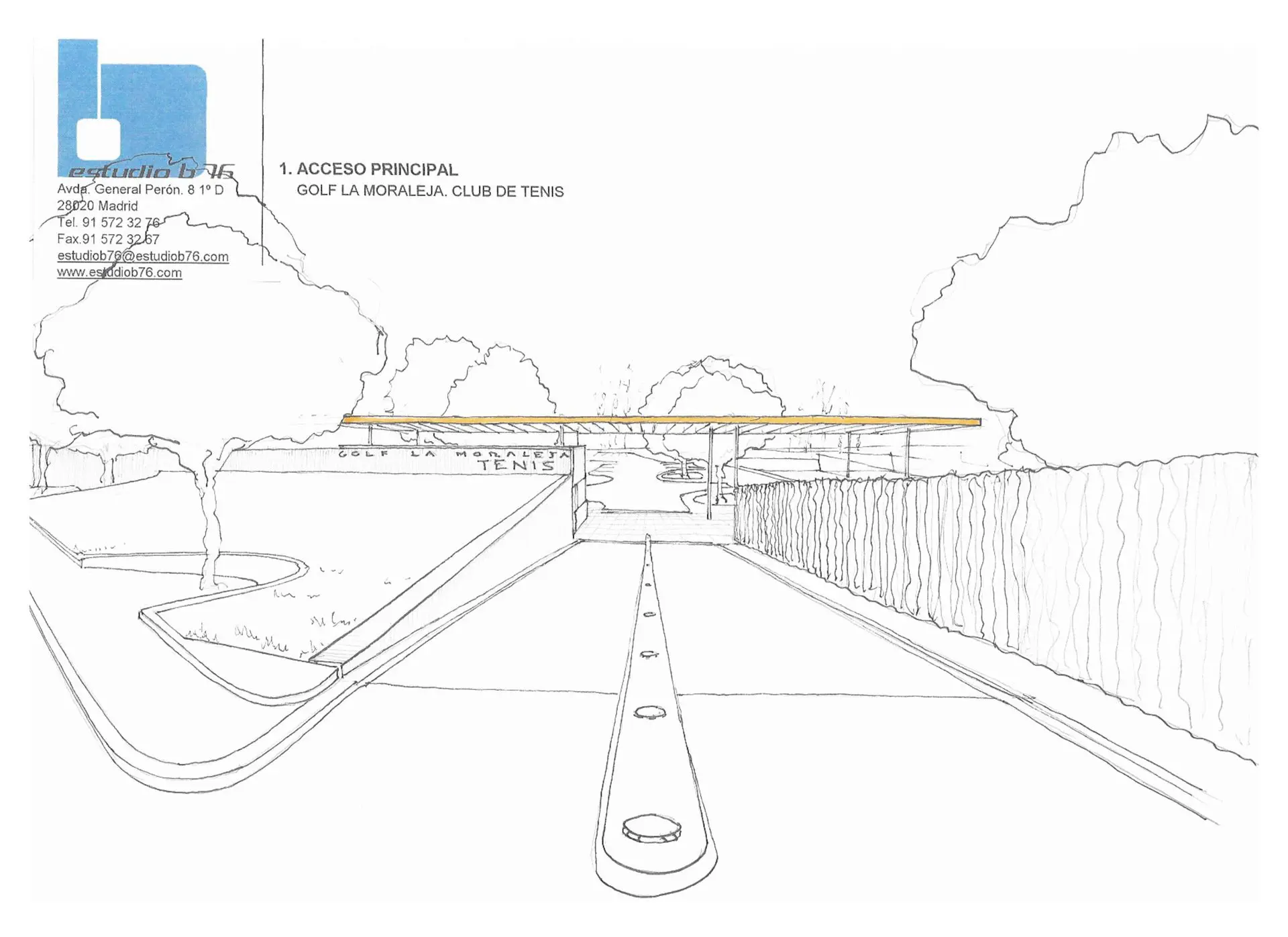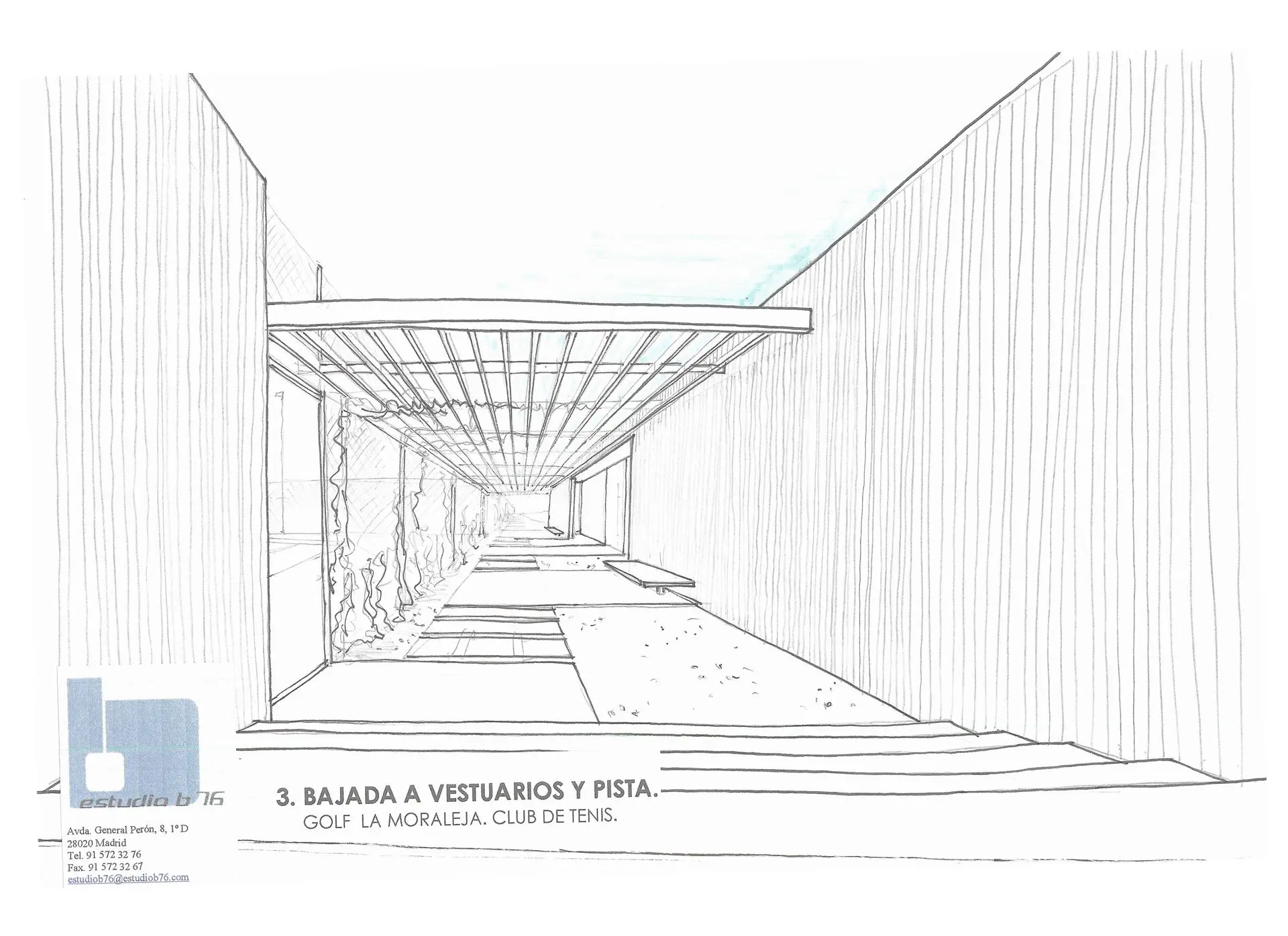 Sobre el solar, propiedad de Golf La Moraleja, situado junto al hoyo 10 del campo de golf 1 (C/ Camino ancho con C/ Camino), se proyectan las instalaciones de tenis con acceso independiente compuestas por 4 pistas de resina, 2 de césped artificial, aparcamiento y vestuarios. El proyecto se adapta a la topografía y respeta al máximo las encinas existentes. El resultado es la combinación de formas orgánicas (terreno y alcorques de las encinas) y otras lineales (muros de contención, edificación y las propias pistas de tenis.