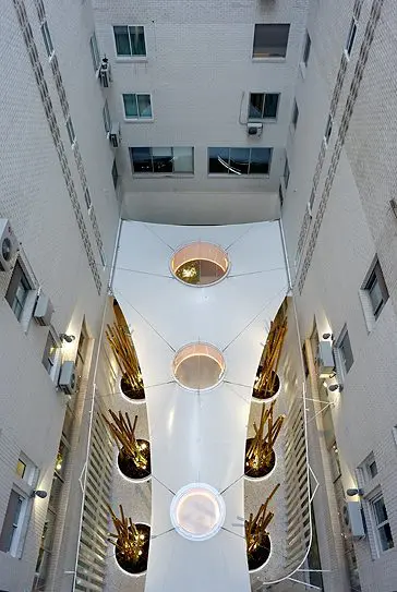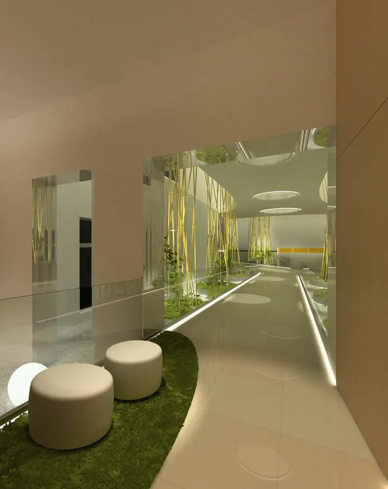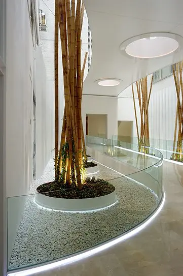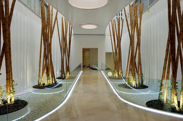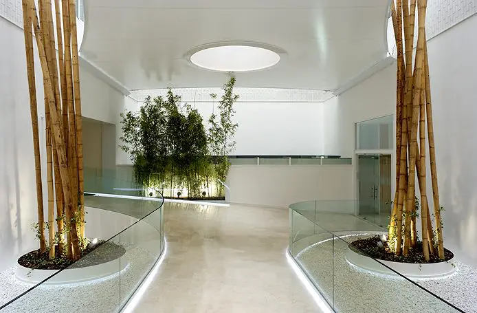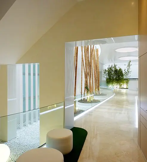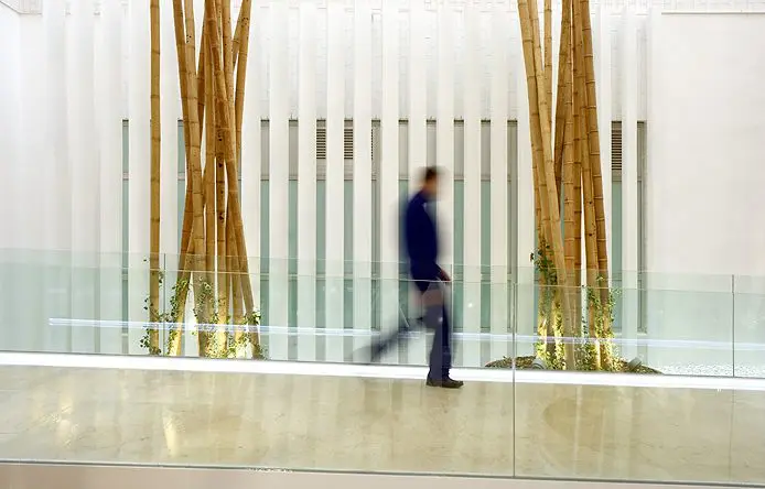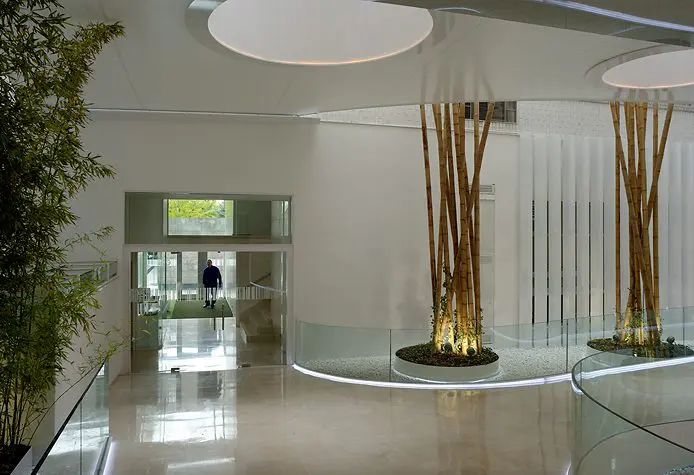 Una estética decorativa y de iluminación, terminan por completar un conjunto de tres torres con una personalidad perfectamente definida que, con claridad, transparencia y ecología, transmite la filosofía de la Fundación propietaria.
