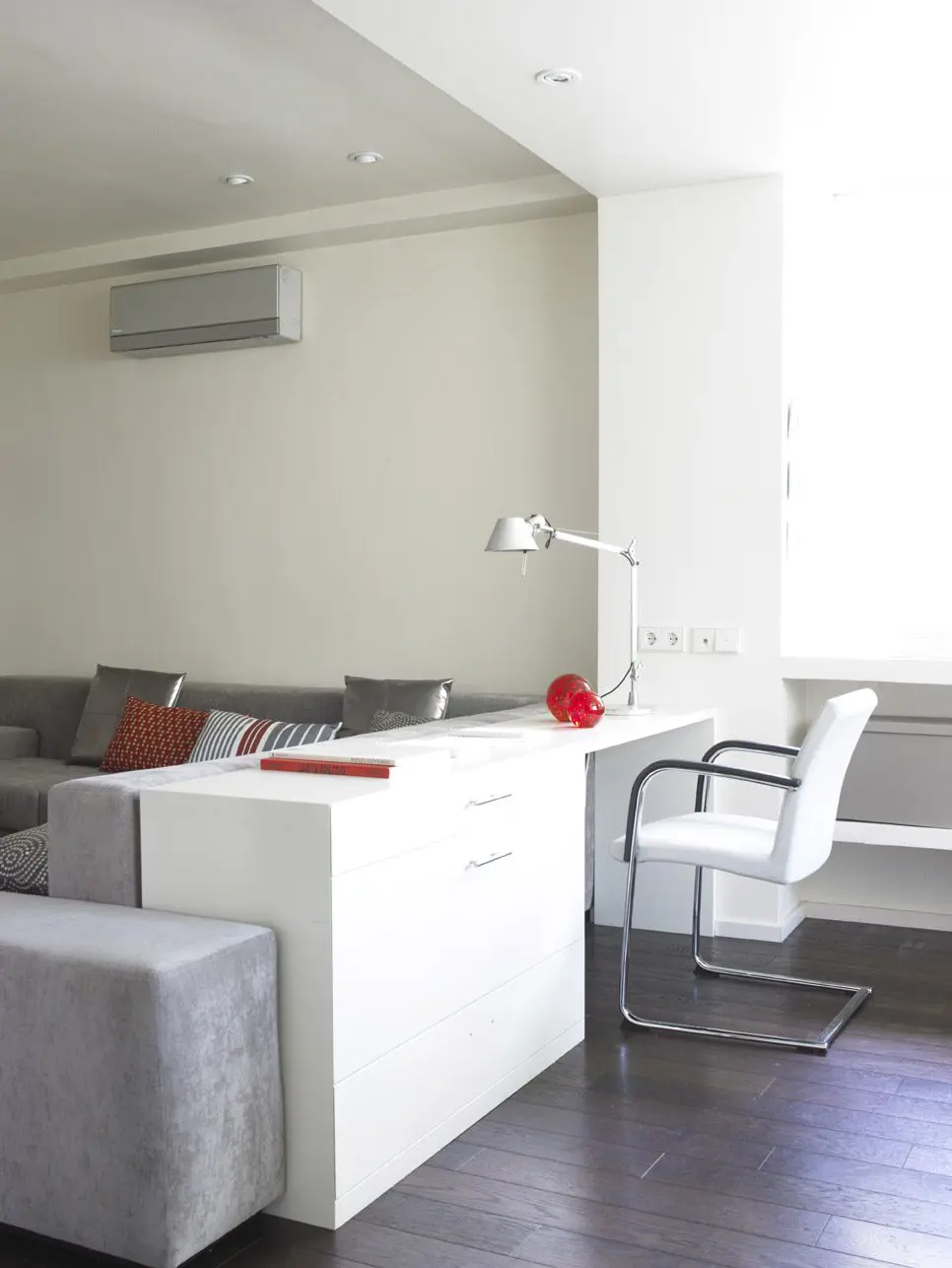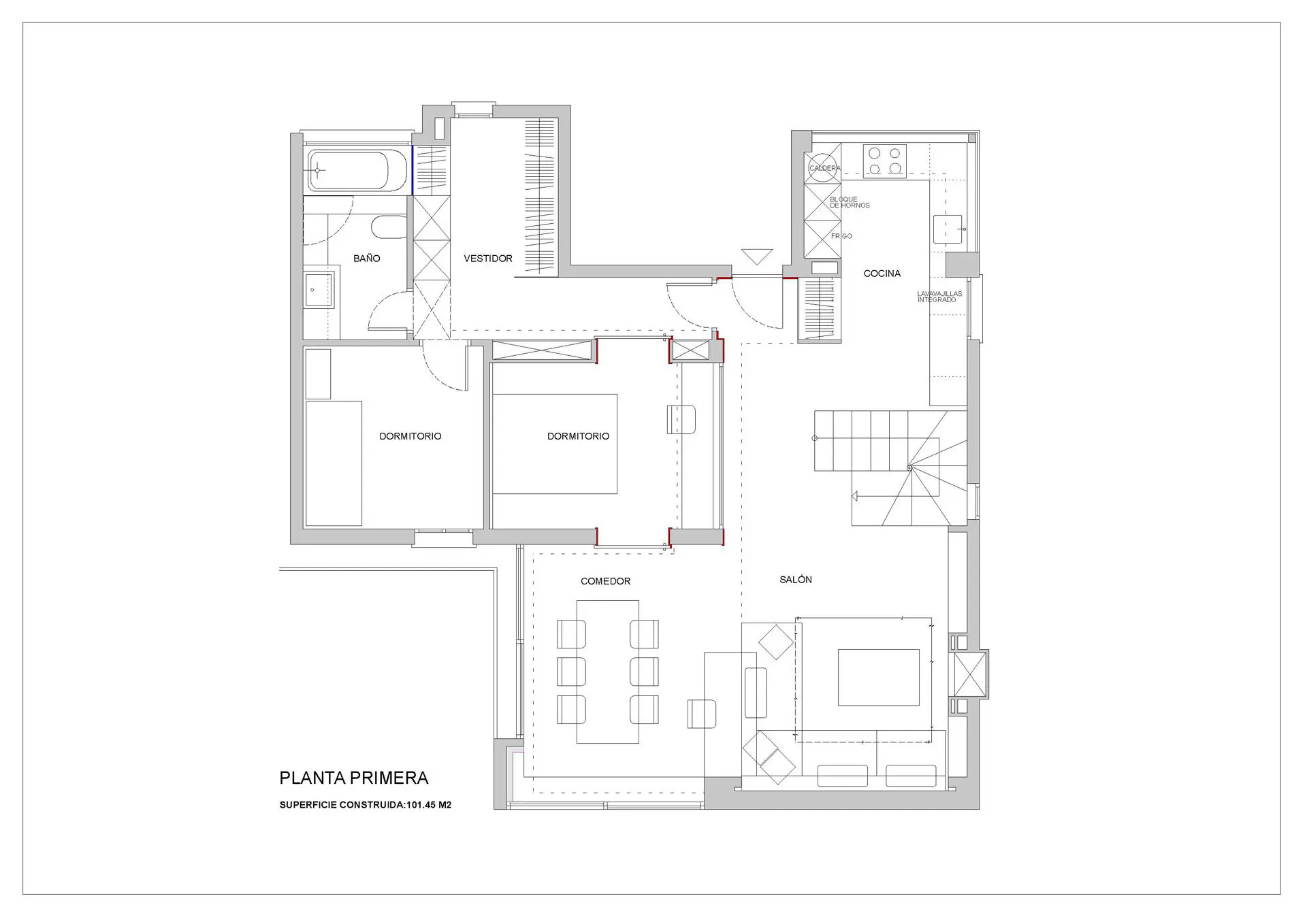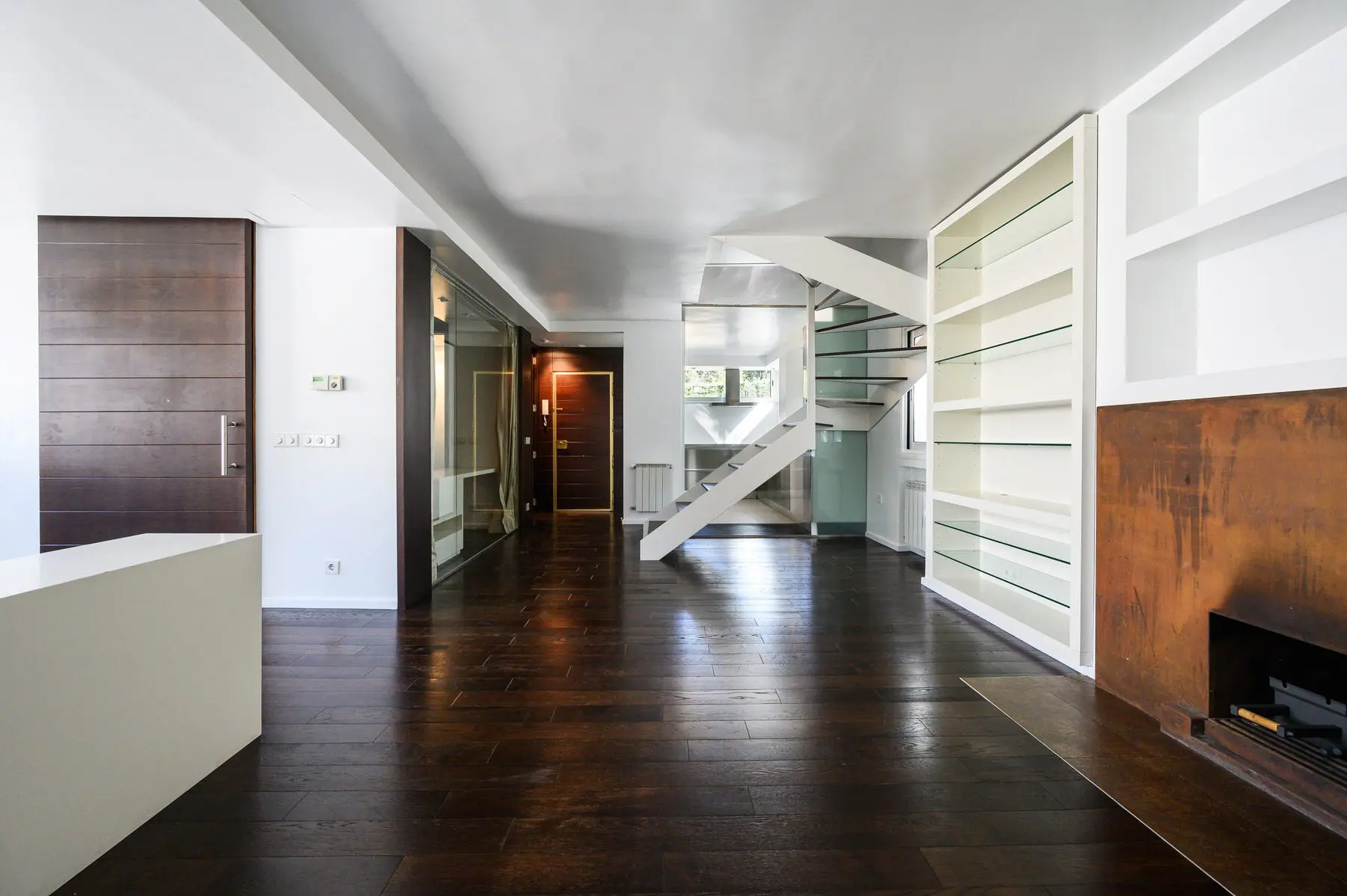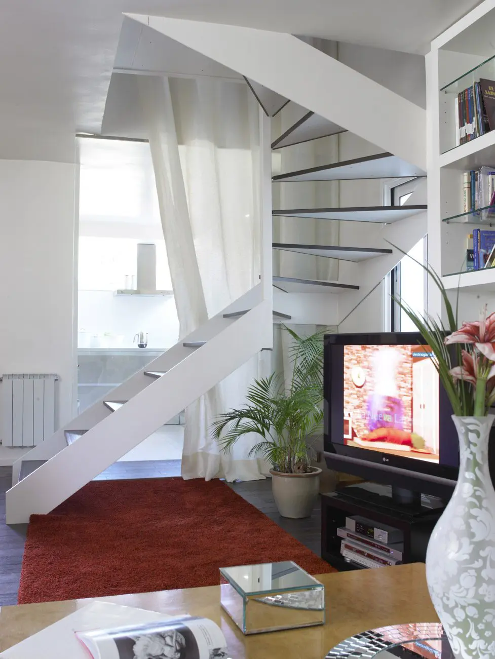 Reforma integral de vivienda duplex pareada. El espacio se transforma radicalmente. Blanco y madera en continuidad visual de los espacios y luz, mucha luz. Se amplía el espacio abuhardillado y se comunica con una escalera de inteligente diseño. Totalmente amueblada con diseños exclusivos de estudio b76.