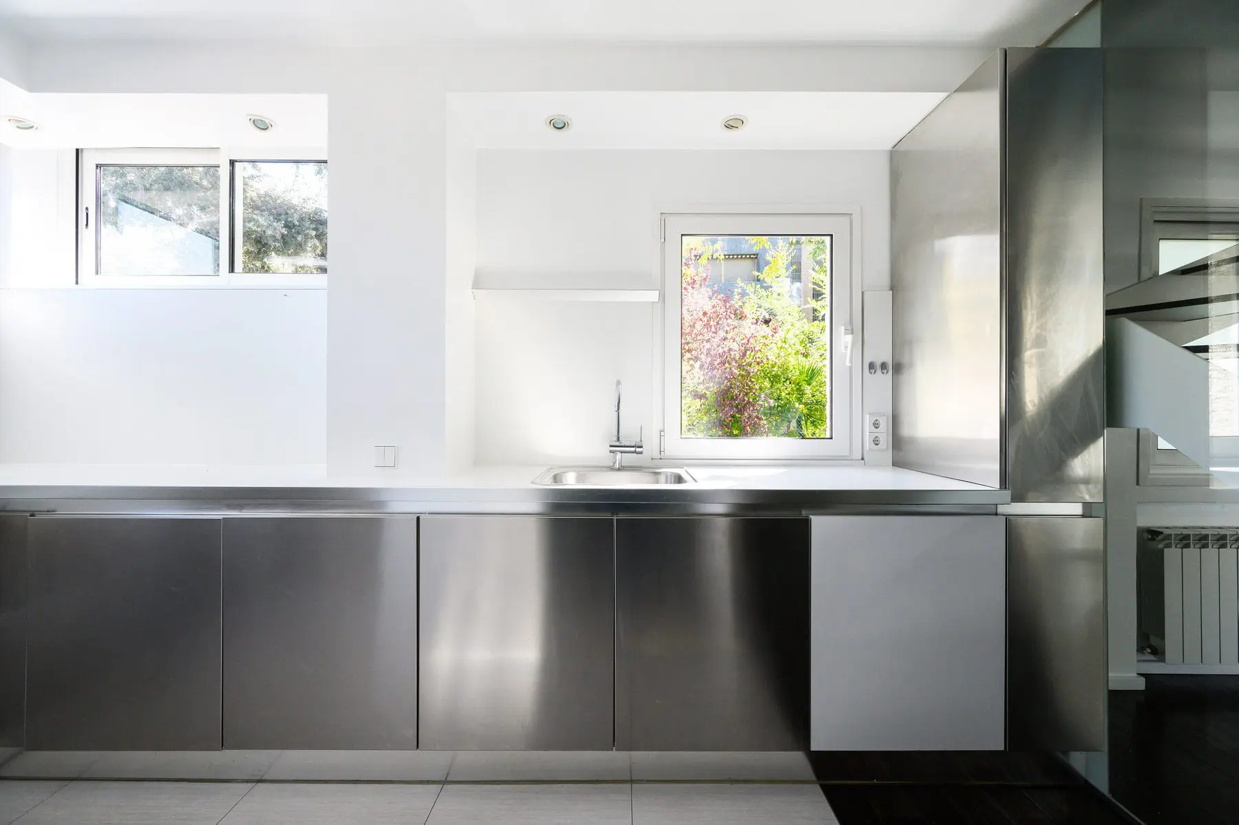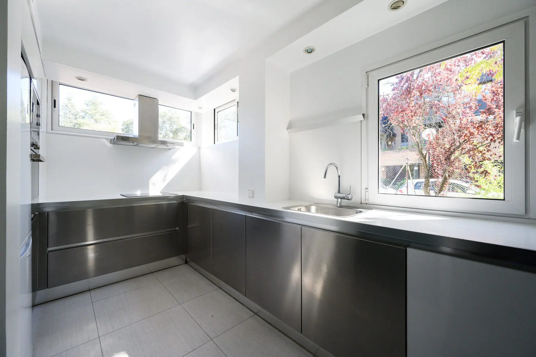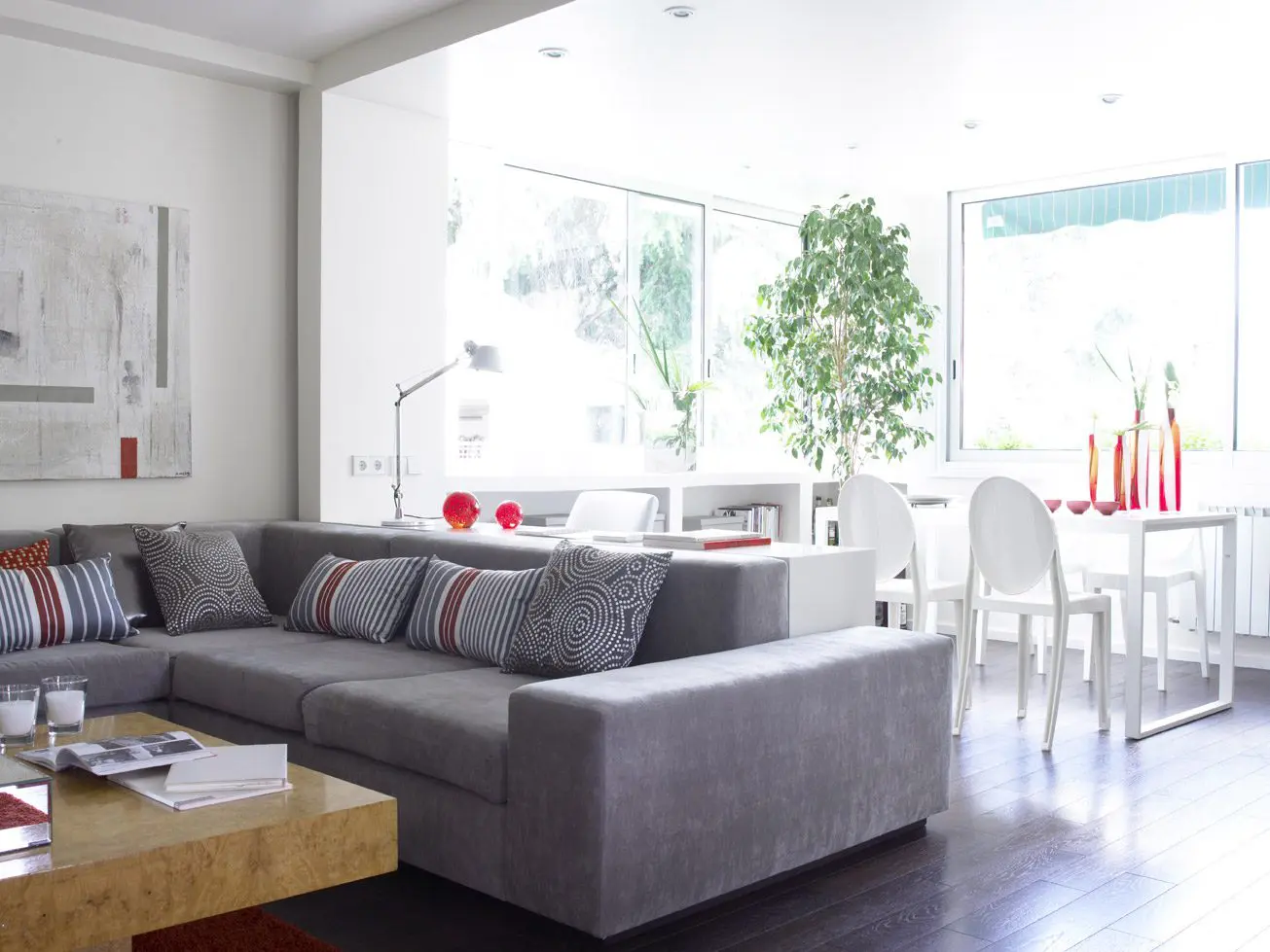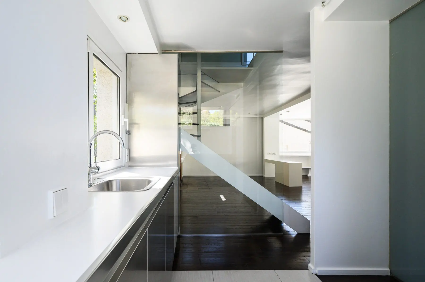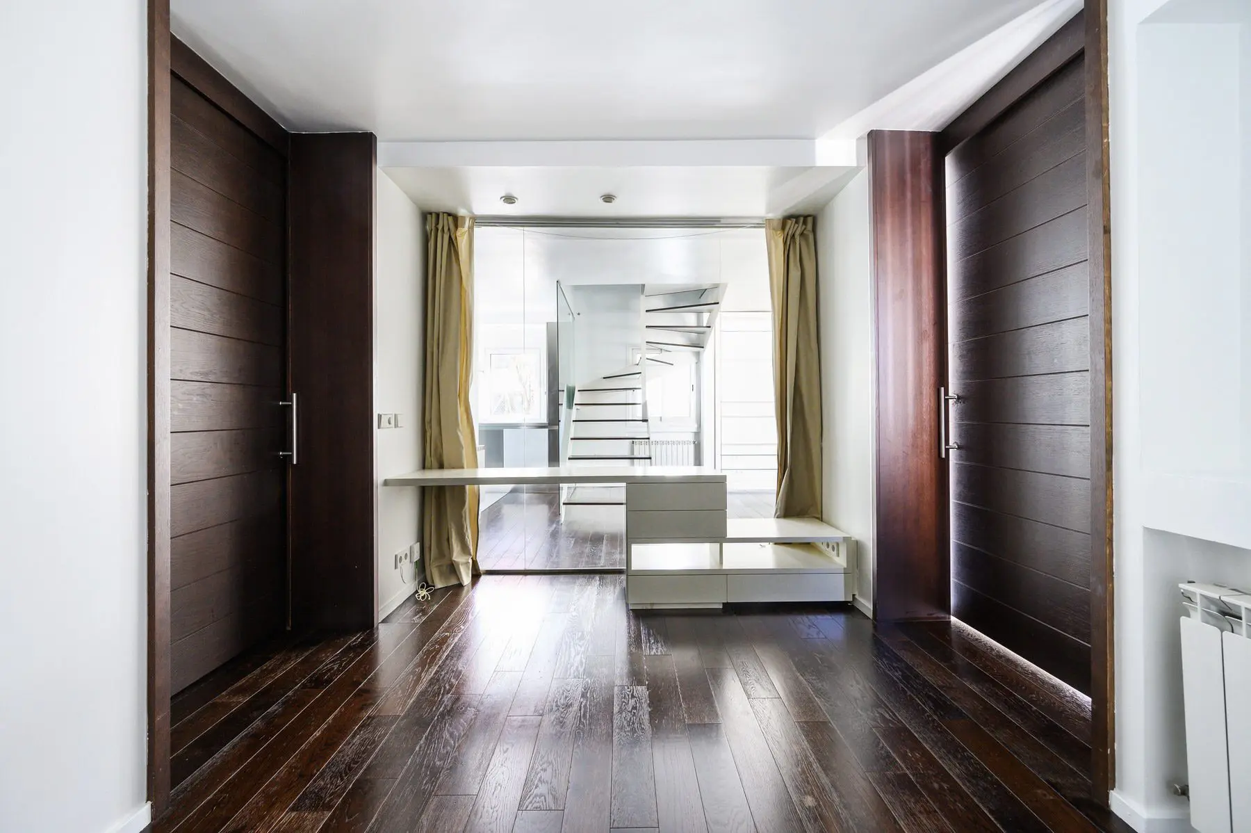 Reforma integral de vivienda duplex pareada. El espacio se transforma radicalmente. Blanco y madera en continuidad visual de los espacios y luz, mucha luz. Se amplía el espacio abuhardillado y se comunica con una escalera de inteligente diseño. Totalmente amueblada con diseños exclusivos de estudio b76.