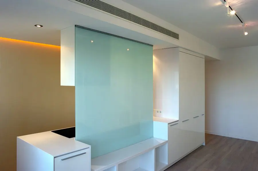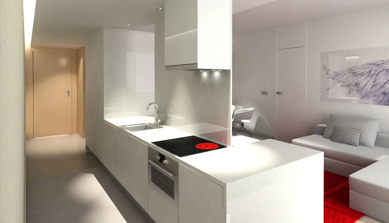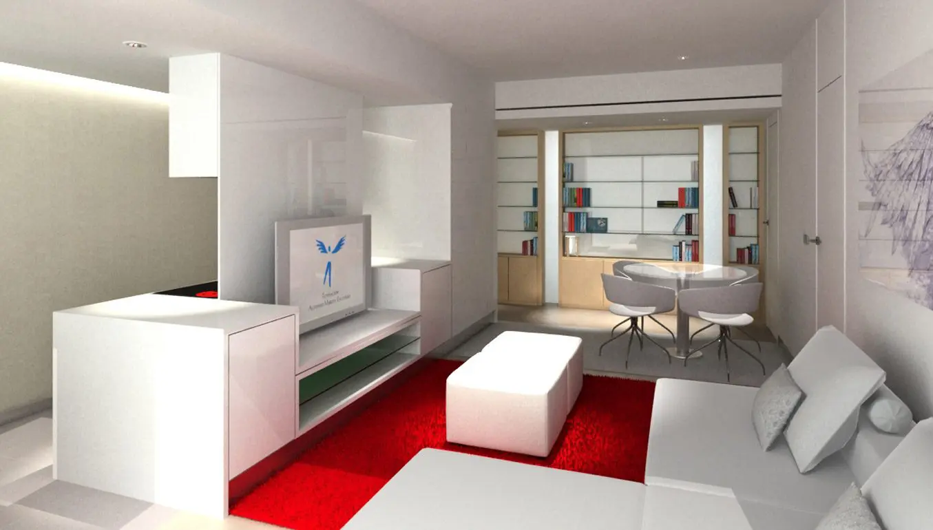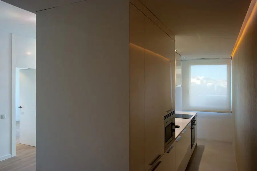 La Fundación Alfonso Martín Escudero convocó concurso para el proyecto y obra de reforma de sus 257 viviendas destinadas a alquiler, situados en los tres edificios de su propiedad (Avenida de Brasil 30, Capitán Haya 19 y Gral. Yagüe 10). La propuesta ganadora de Estudio b76 plantea su actualización integral con distribuciones de 1, 2 y 3 dormitorios, con baño independiente para cada uno, bajo un criterio competitivo de costes y plazo de ejecución. Espacio, claridad, fácil mantenimiento y atractivo para los posibles inquilinos son los objetivos del diseño, donde la cocina es un elemento protagonista de los apartamentos, integrado visualmente al espacio de salón comedor pero independizando ruidos y olores mediante el uso de acristalamiento transparente. Puertas correderas, amplios armarios y predominancia del color blanco neutro con incorporación de tonos roble son las principales características.