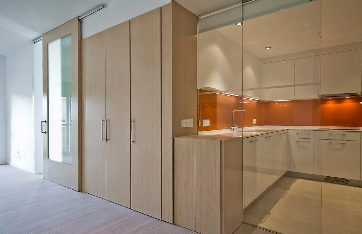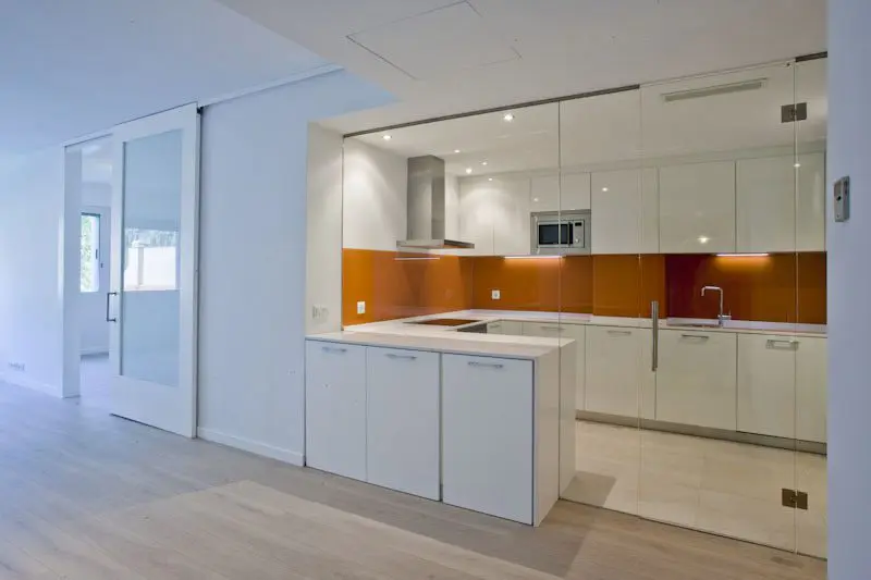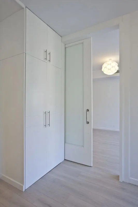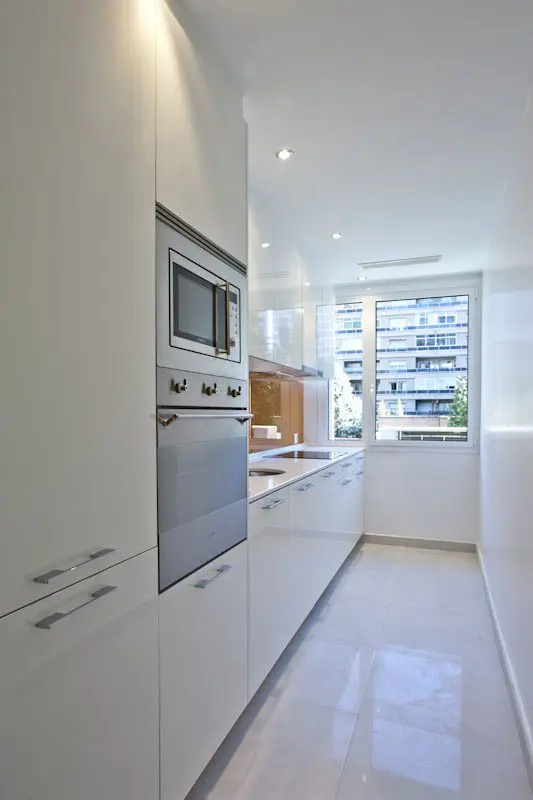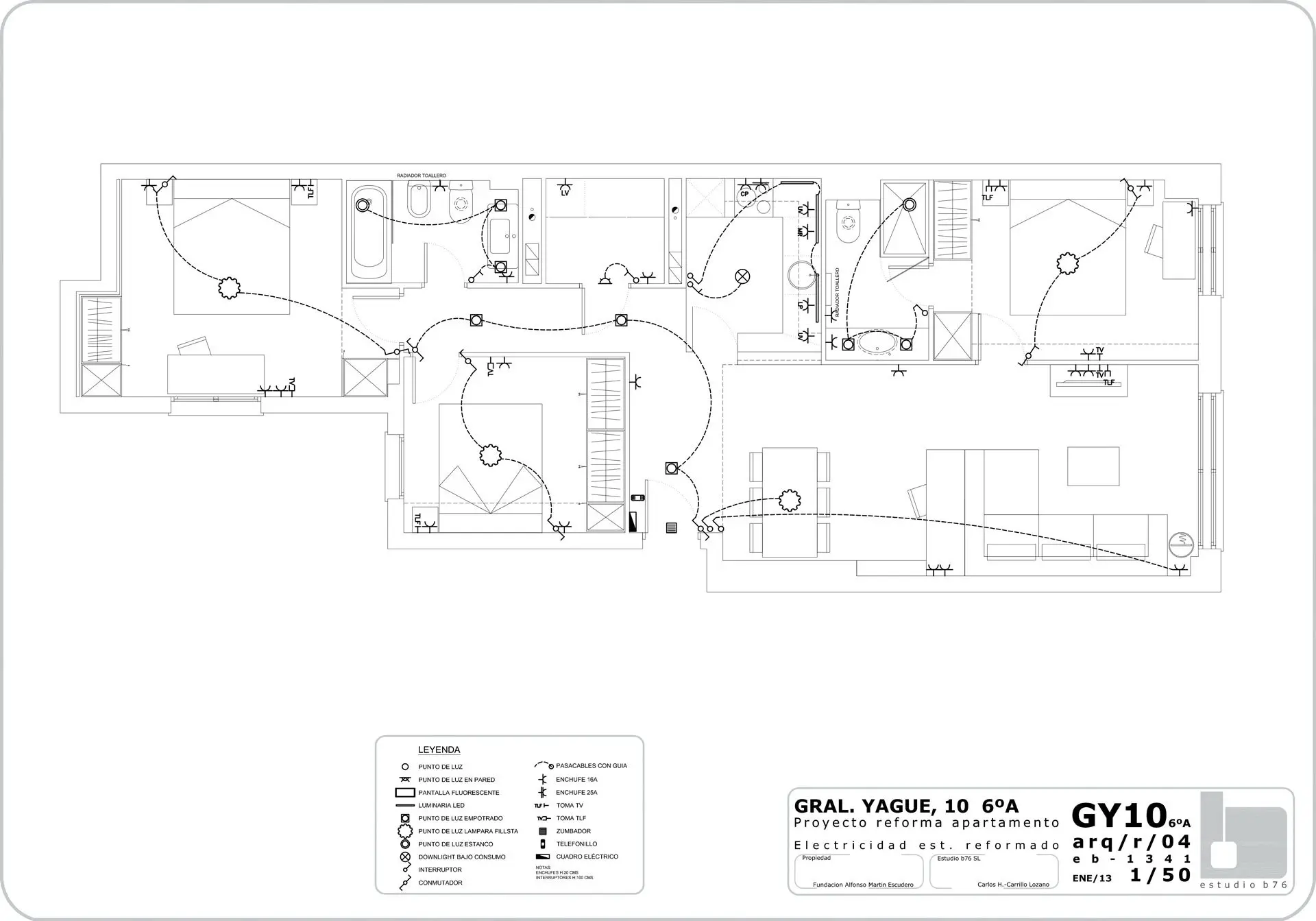 La Fundación Alfonso Martín Escudero convocó concurso para el proyecto y obra de reforma de sus 257 viviendas destinadas a alquiler, situados en los tres edificios de su propiedad (Avenida de Brasil 30, Capitán Haya 19 y Gral. Yagüe 10). La propuesta ganadora de Estudio b76 plantea su actualización integral con distribuciones de 1, 2 y 3 dormitorios, con baño independiente para cada uno, bajo un criterio competitivo de costes y plazo de ejecución. Espacio, claridad, fácil mantenimiento y atractivo para los posibles inquilinos son los objetivos del diseño, donde la cocina es un elemento protagonista de los apartamentos, integrado visualmente al espacio de salón comedor pero independizando ruidos y olores mediante el uso de acristalamiento transparente. Puertas correderas, amplios armarios y predominancia del color blanco neutro con incorporación de tonos roble son las principales características.